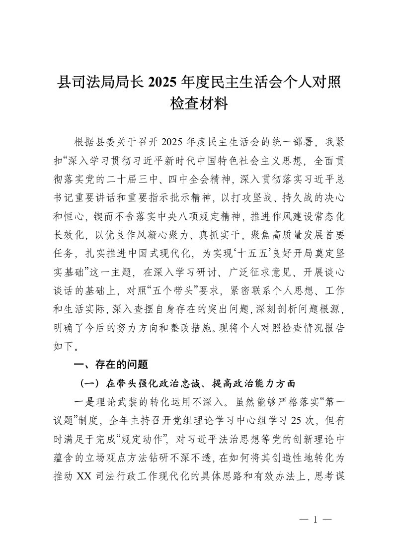 县农业农村局党组书记2025年度民主生活会个人对照检查