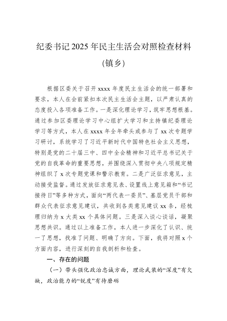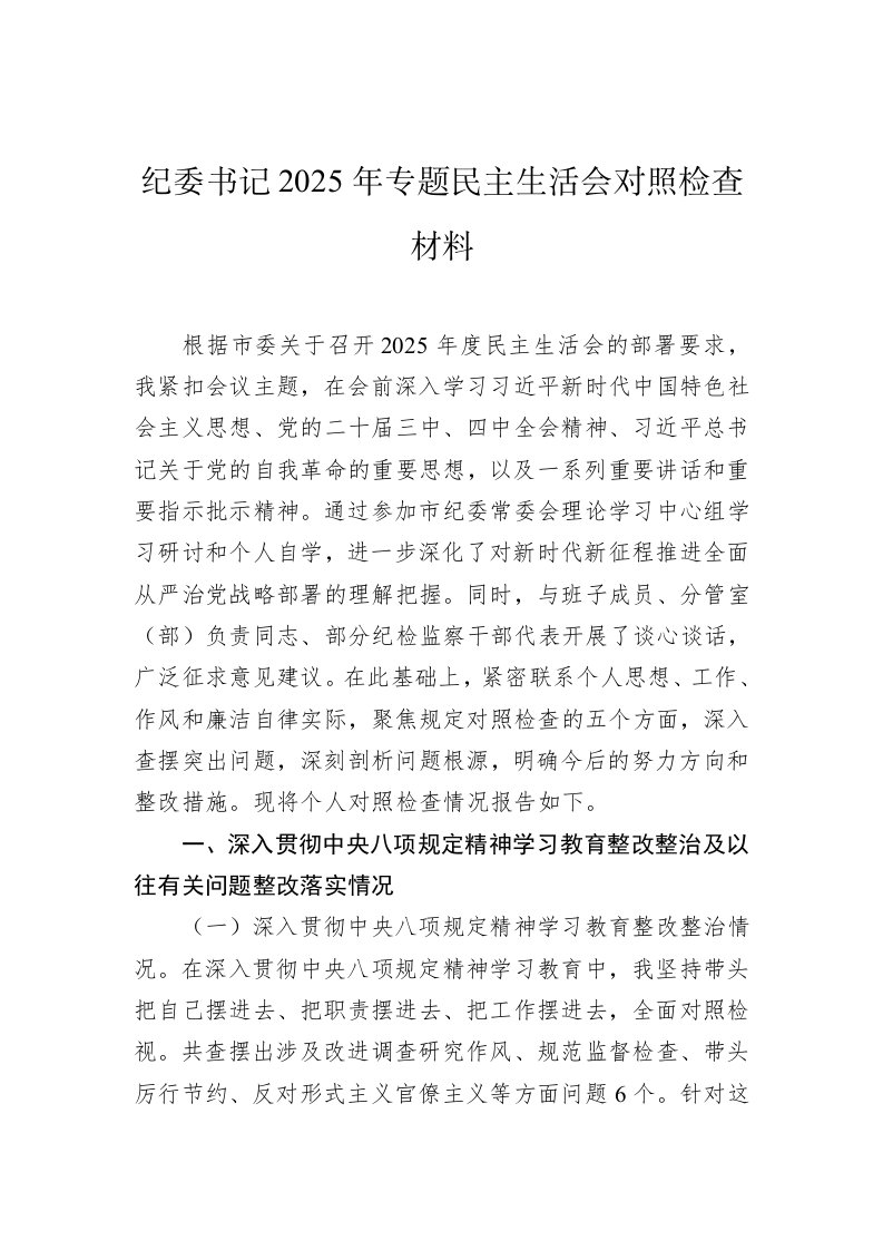 ,对照检查,纪委书记,生活,专题民主生活会,专题,