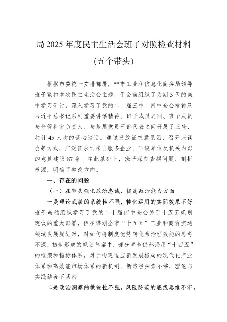 ,对照检查,五个带头,强党性,发展,生活,深化改革,