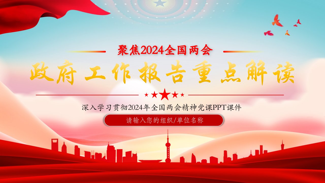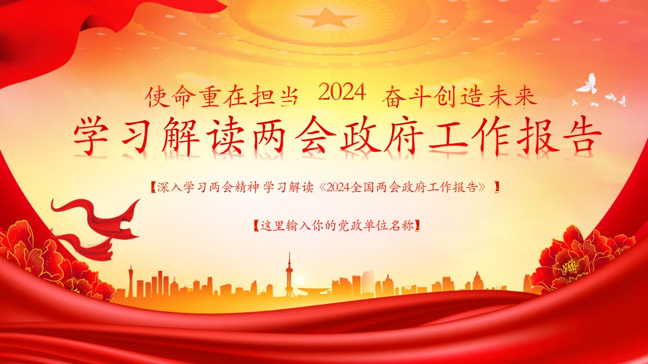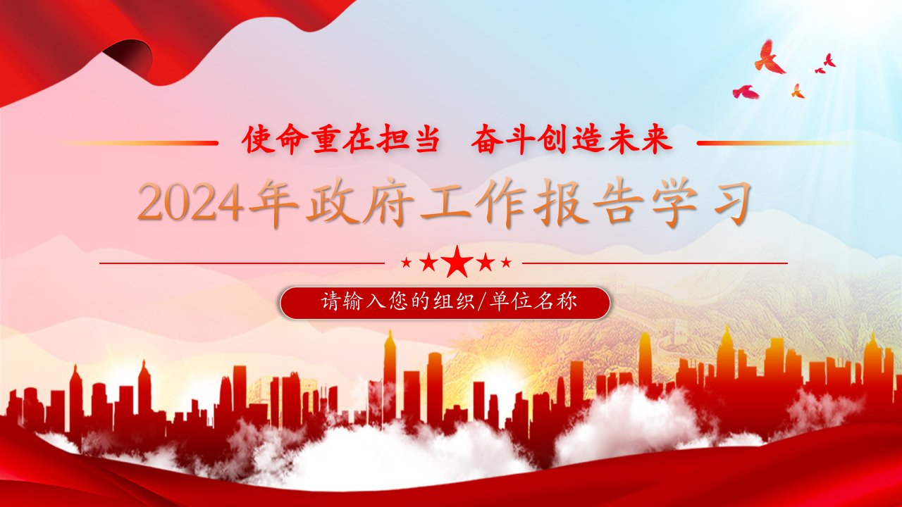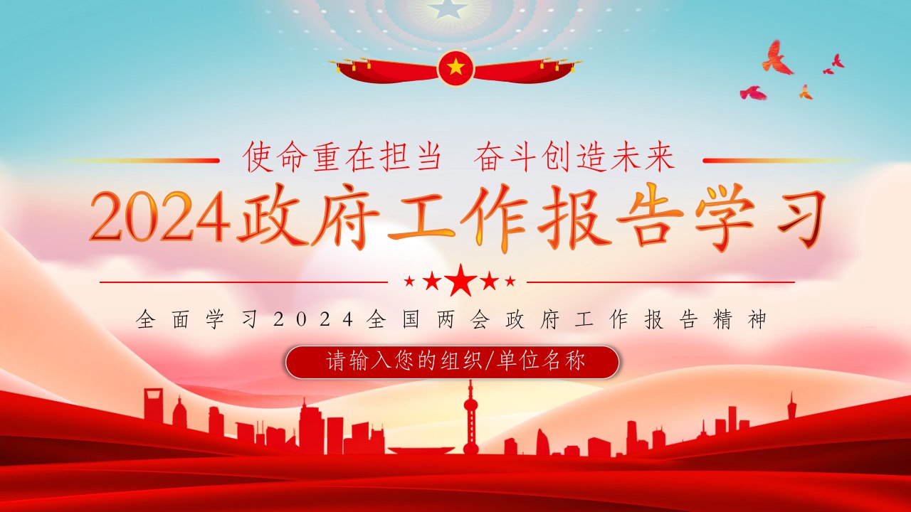 2024政府工作报告 党课ppt模板(带内容)党支部团支部党员干部学习党课课件红色大气使命重在担当奋斗创造未来党课ppt素材