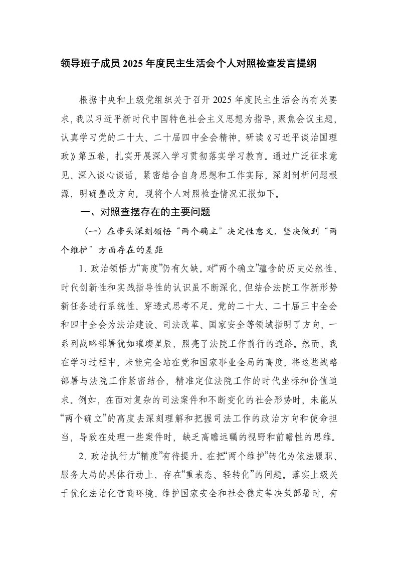 作为方面存在的差距落实全面从严治党责任锻造过硬司法队伍方面存在的差距领导班子成员2025年度民主生活会个人对
