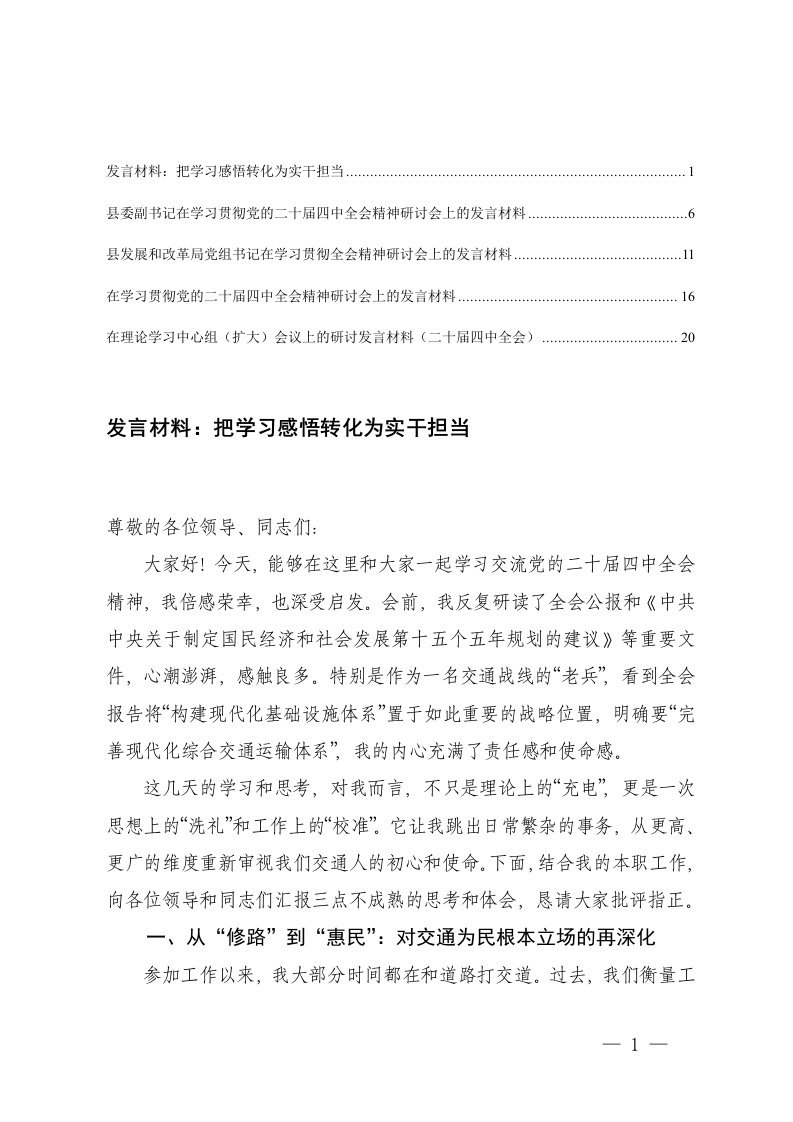 学习贯彻二十届四中全会精神发言材料把学习感悟转化为实干