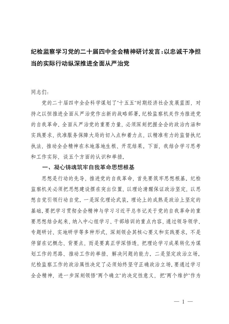 ,研讨发言,忠诚,发言,纪检,全面从严治党,纪检监察,二十届,学习,实际行动,全会精神纪检监察学习党的二十届四中全会精神研讨发言以忠诚干净