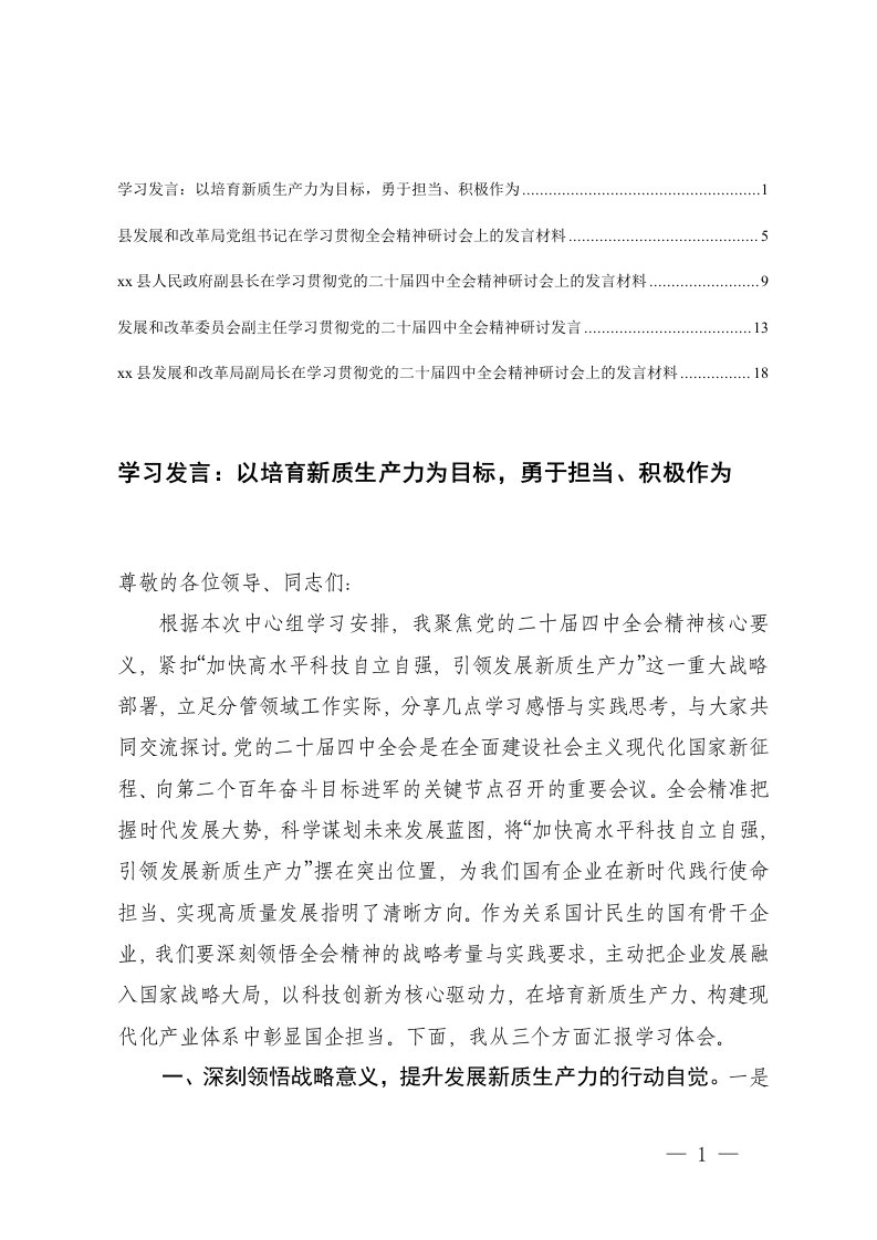 ,研讨发言,发言,二十届,学习,全会精神中心组学习二十届四中全会精神研讨发言以培育新质生产力为目标勇于