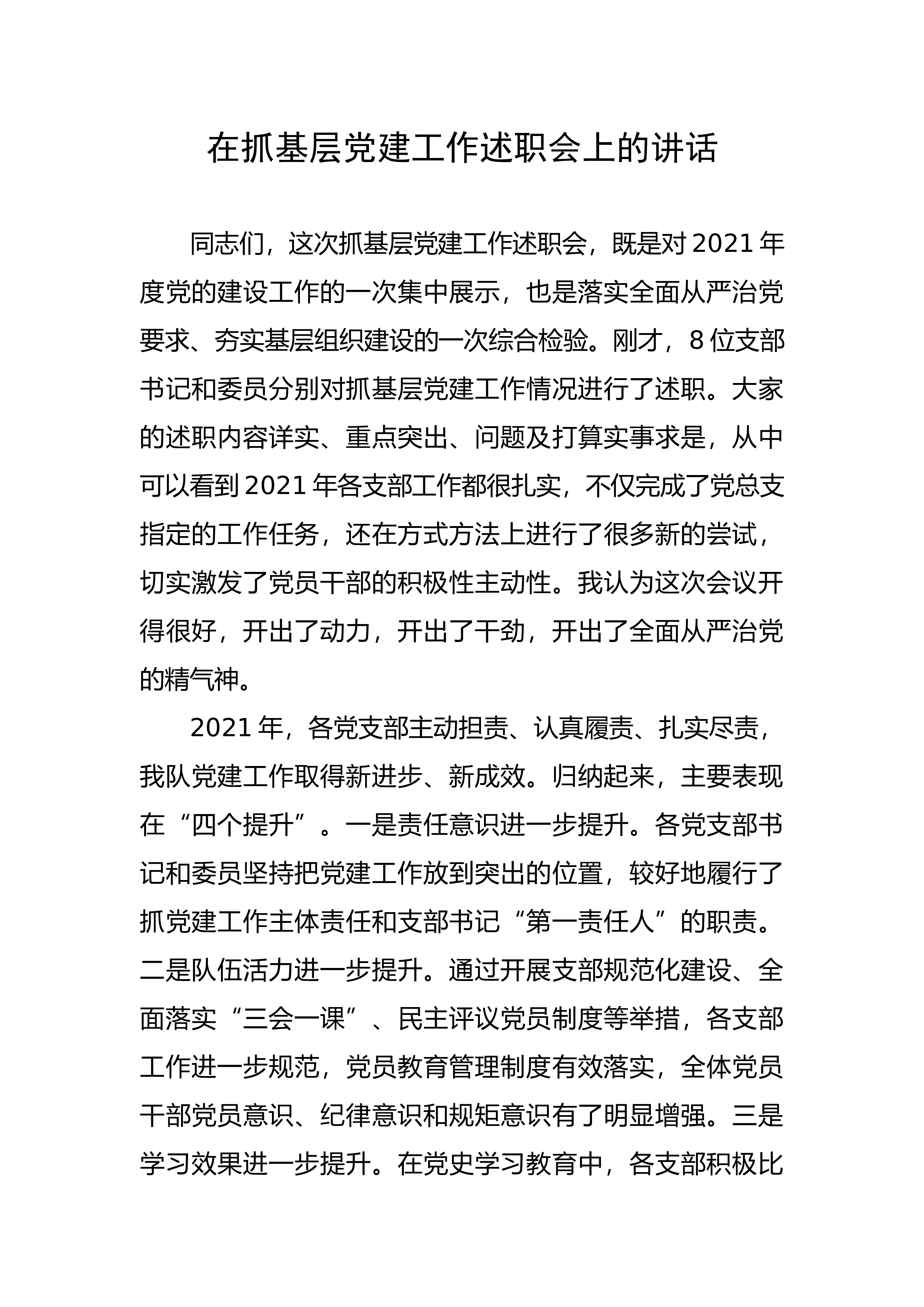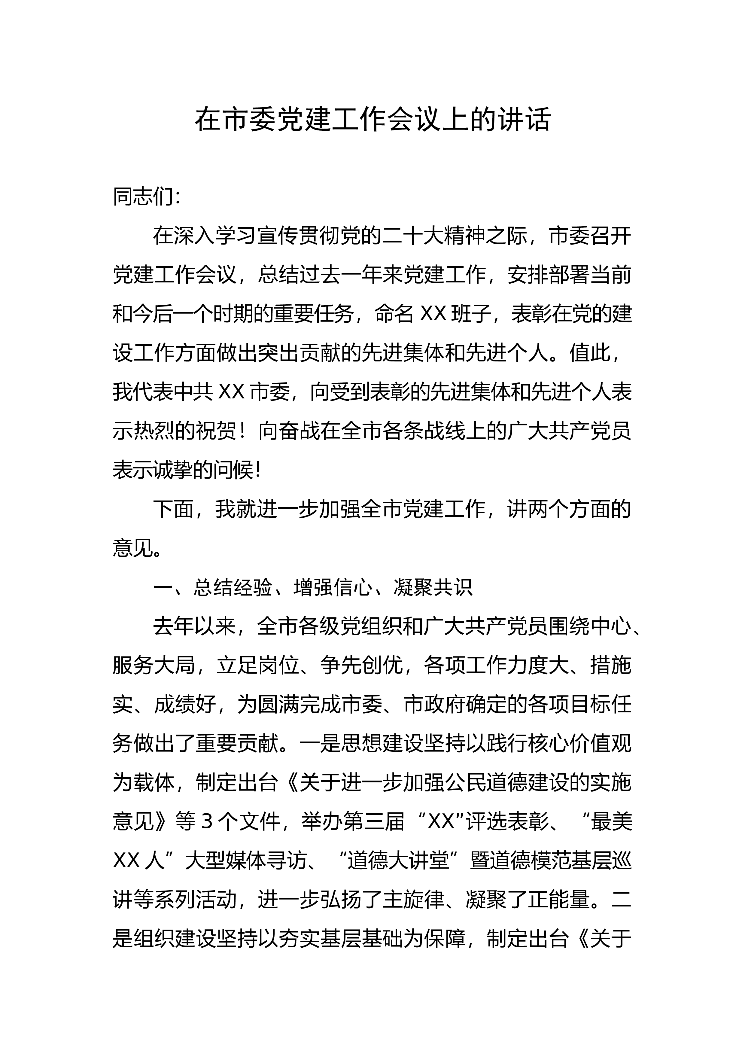 党的建设工作领导小组会议主持讲话同志们:今天,我们召开市委第一次党的建设工作领导小组会议,审议2022年市委党的建设工作要点。下面,请市委党的建设工作领导小组办公室的同志汇报要点起草情况。******(汇报结束后)大家有什么意见,请发表。******没有意见,会议原则通过,请抓紧印发实施。过去一年,全市各级党组织深入贯彻党中央决策部署和省委工作要求,全面落实新时代党的建设总要求和新时代党的组织路线,认真开展党史学习教育和庆祝建党100周年系列活动,圆满完成市县乡领导班子集中换届,为实现“十四五”良好开局提供了有力保证。今年是党的二十大召开之年,也是落实省第十二次党代会精神开局之年,全市各级党组...