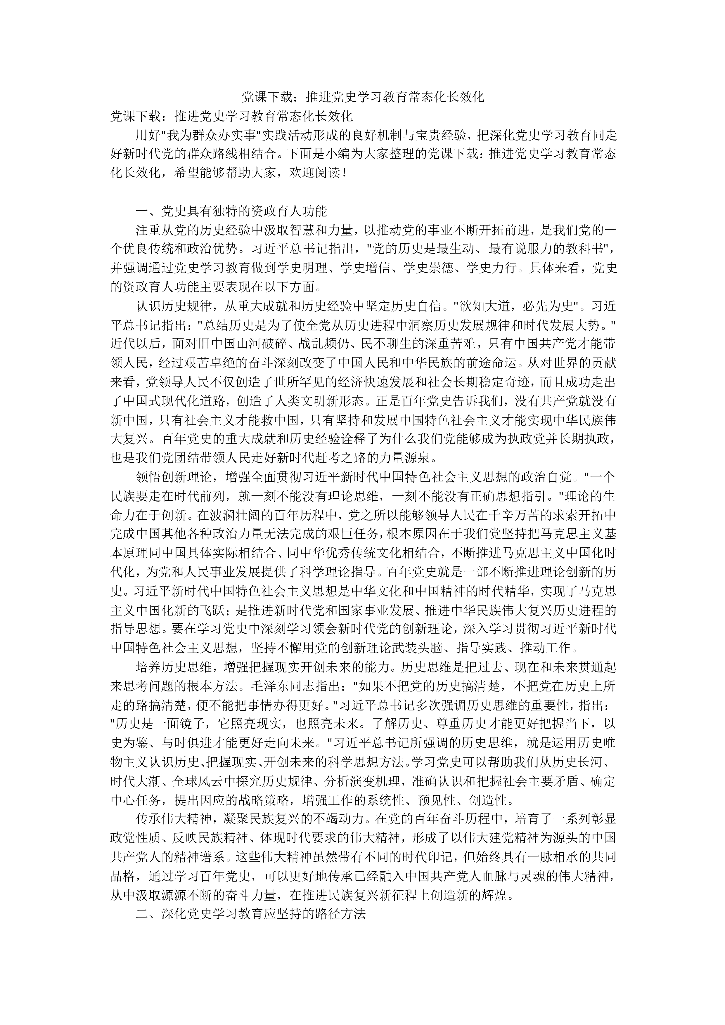党课下载推进党史学习教育常态化长效化
