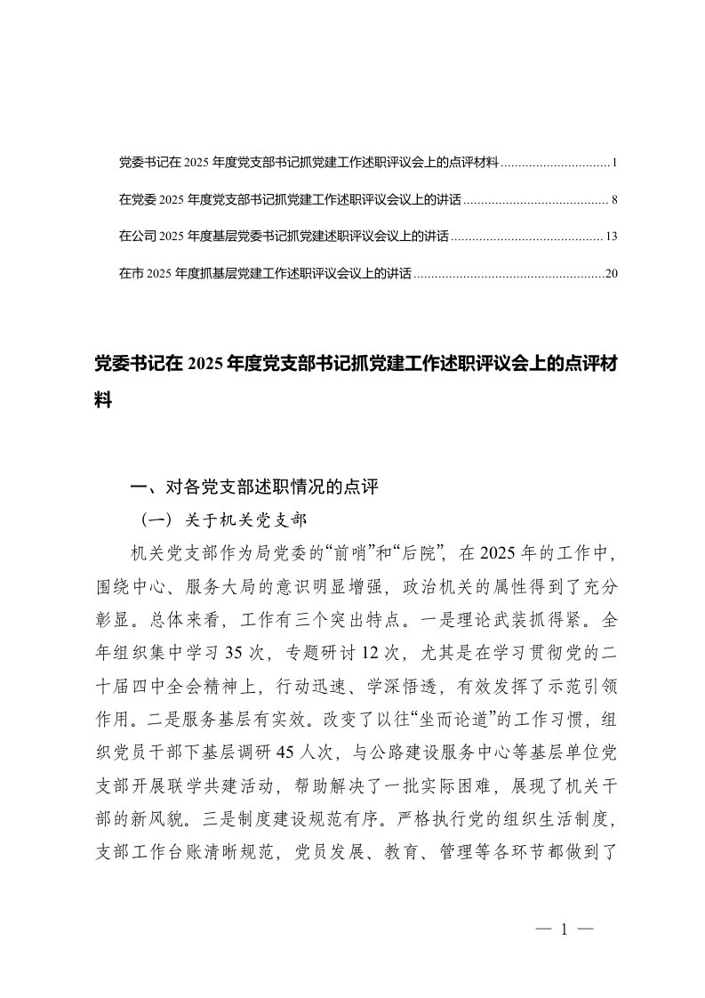 党委书记在2025年度党支部书记抓党建工作述职评议会上的点评2025年度抓基层党建工作述职评议会议上的讲话