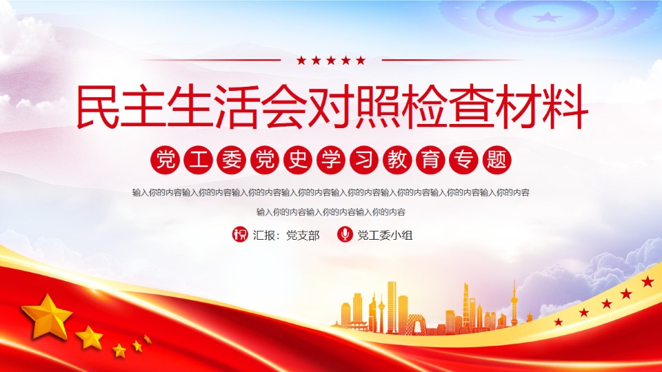 2024微党课2023主题党课ppt民主生活会对照检查材料ppt模板带内容党工委