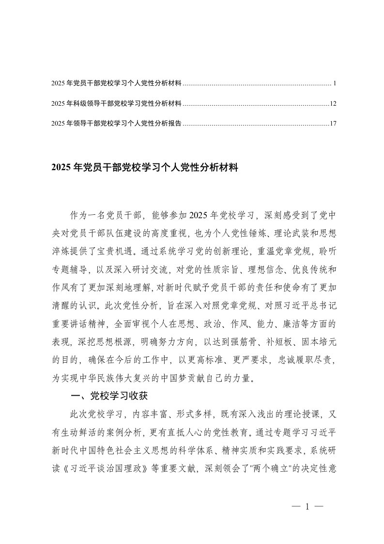 ,党校学习,学习,材料3篇2025年党员干部党校学习个人