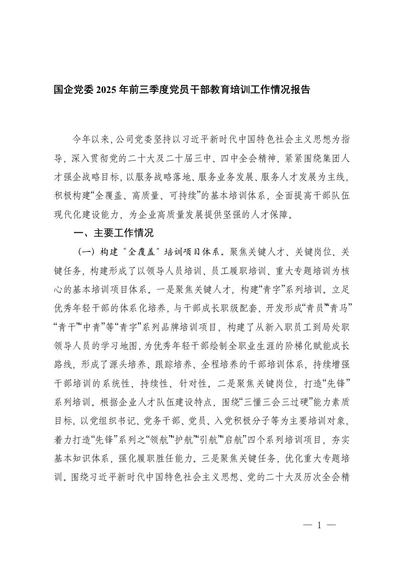 工作总结,国企党委,教育培训,党员干部,干部教育培训,情况报告,教育,报告,总结,国企,工作,党委,培训工作,县委,工作情况国企党委2025年前三季度党员干部教育培训工作情况报告县委组织部关于党员教育体系建设工作总结工作总结,国企党委,教育培训,党员干部,干部教育培训,情况报告,教育,报告,总结,国企,工作,党委,培训工作,县委,工作情况国企党委2025年前三季度党员干部教育培训工作情况报告县委组织部关于党员教育体系建设工作总结