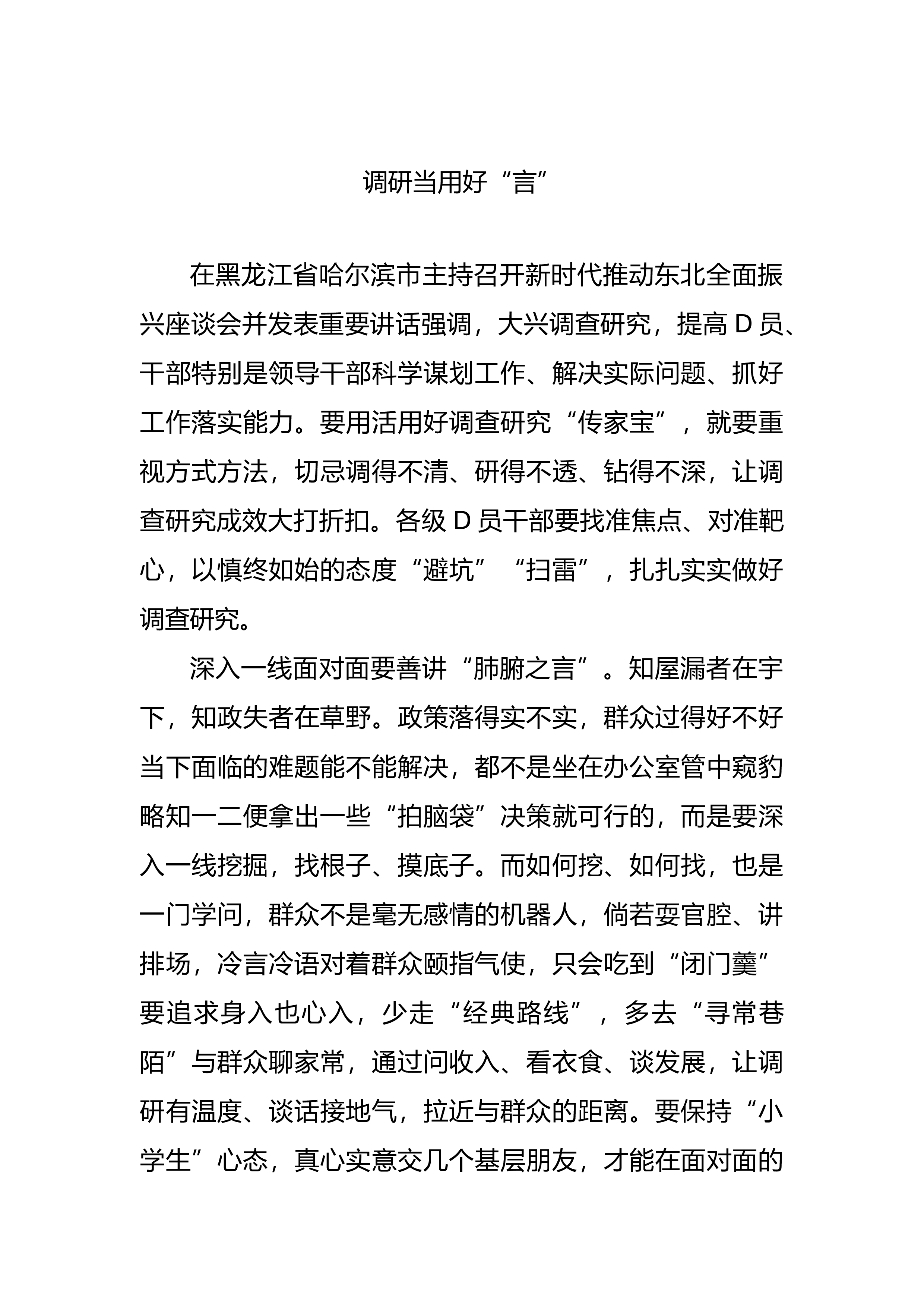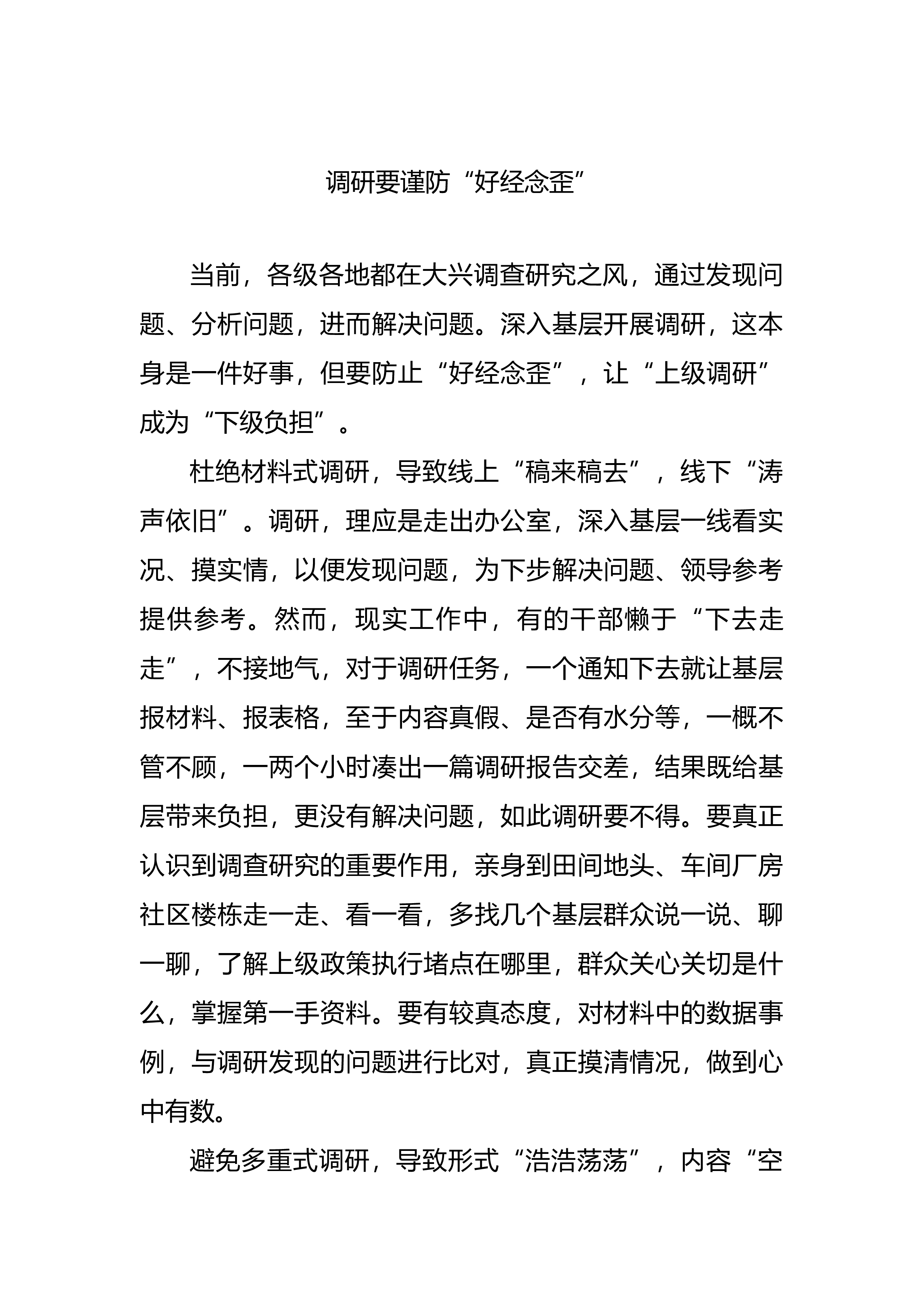 研讨发言:求真务实广调研深查实改解难题