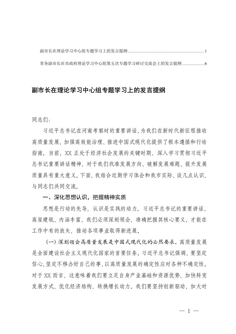 在市政府理论学习中心组第五次专题学习研讨交流会上的