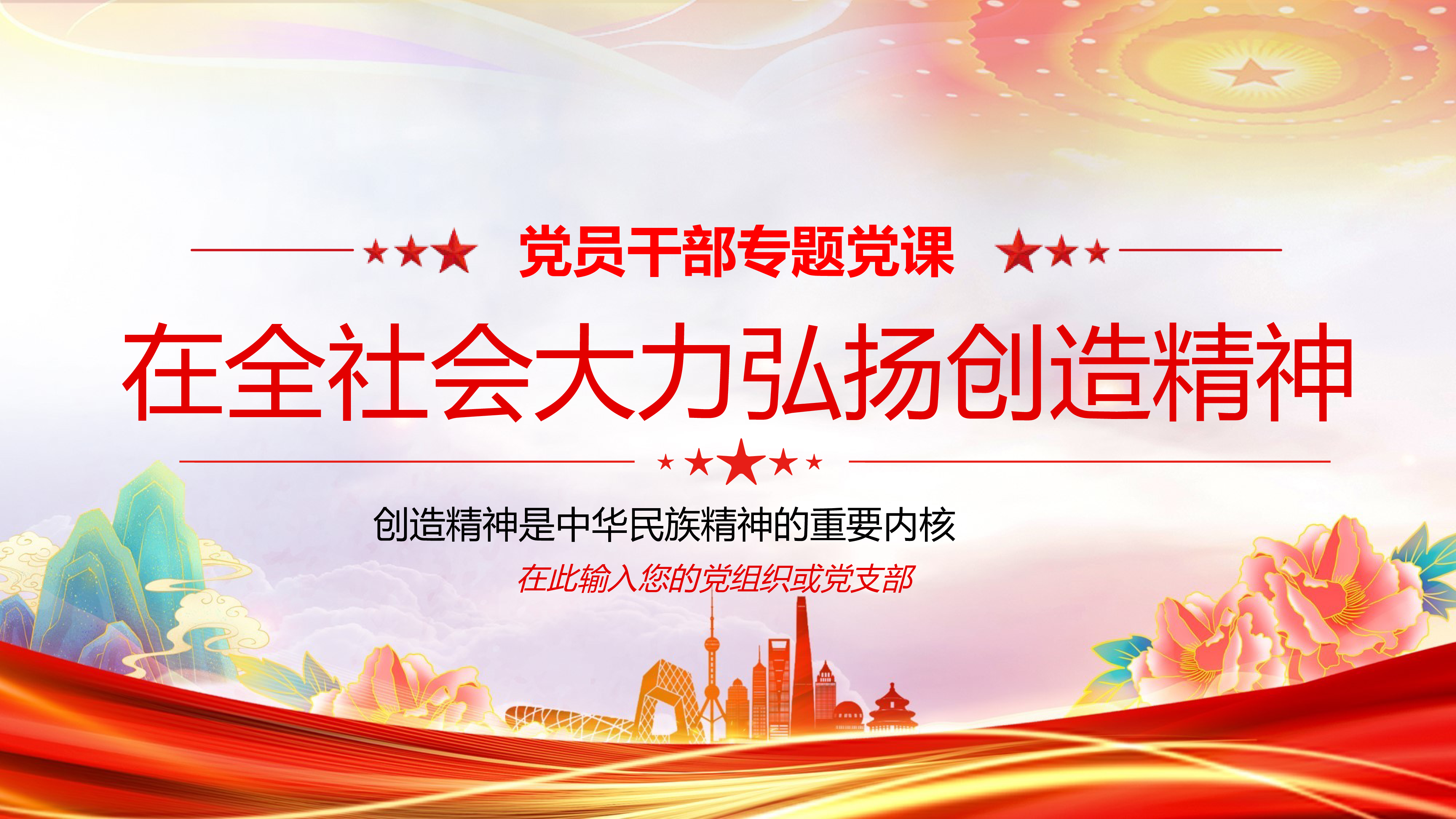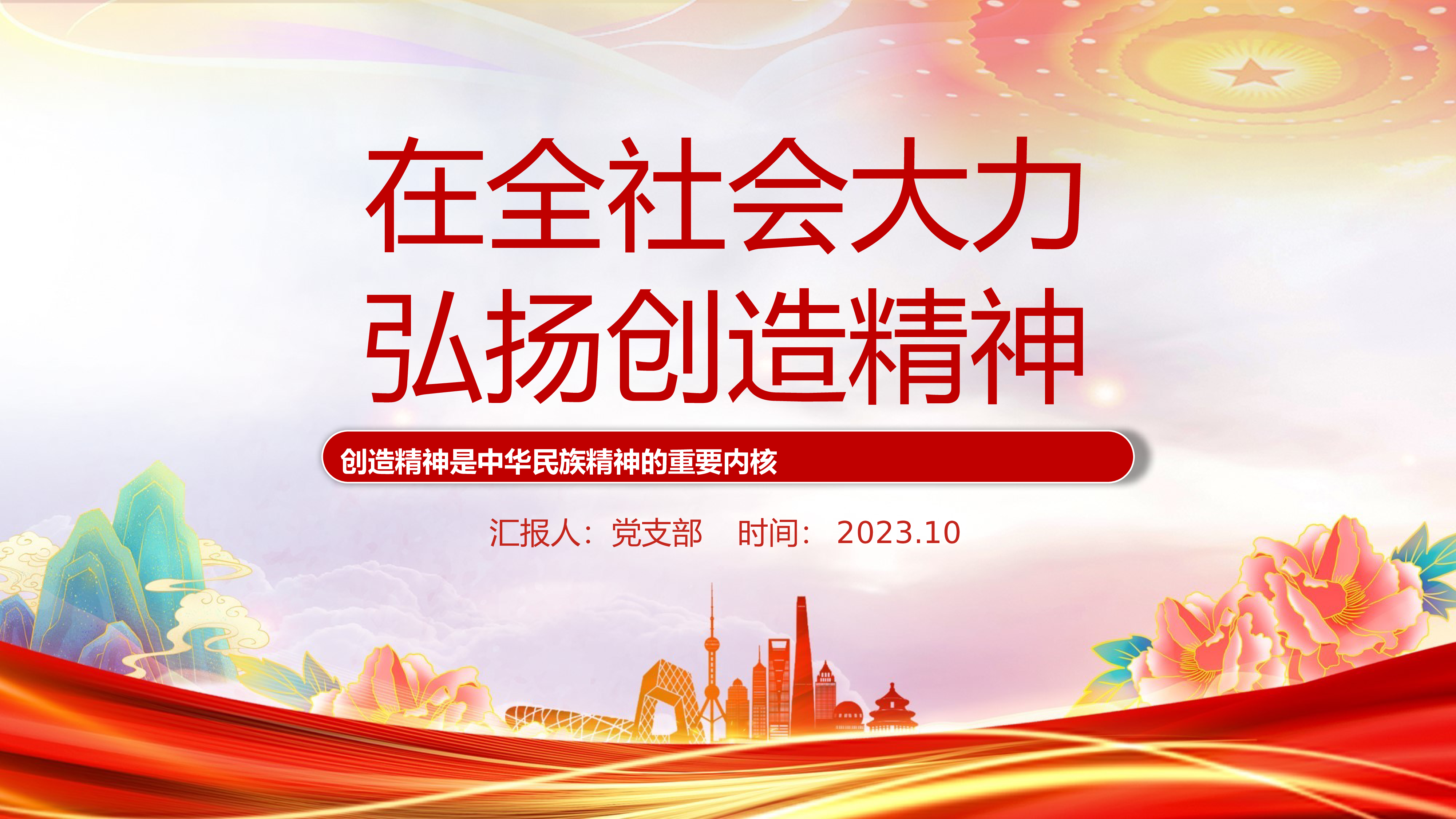 2024微党课党课ppt素材在全社会大力弘扬创造精神ppt模板带内容创造精神是中华民族精神的重要内核ppt党课