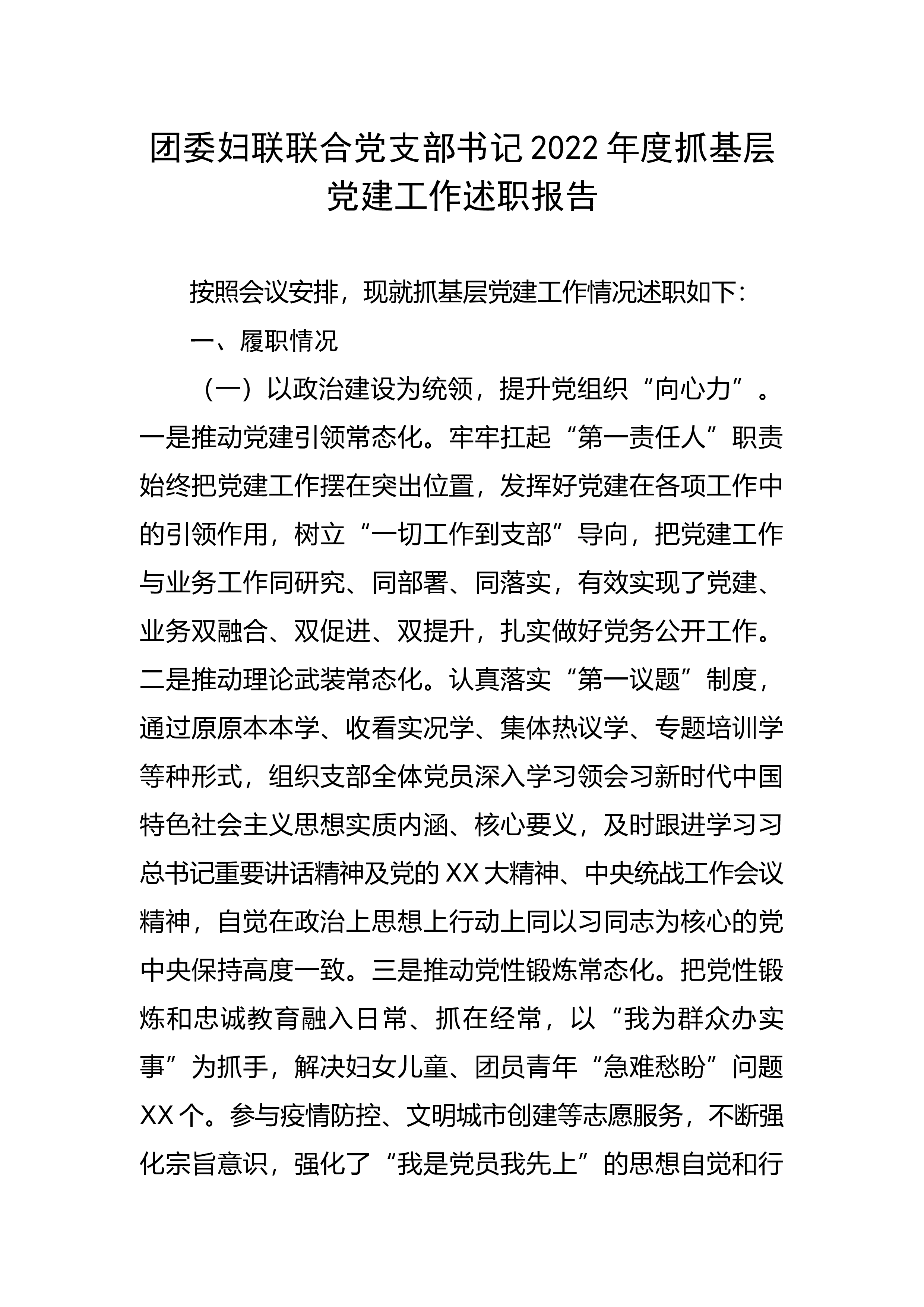 【述职报告】团委妇联联合党支部书记2022年度抓基层党建工作述职报告