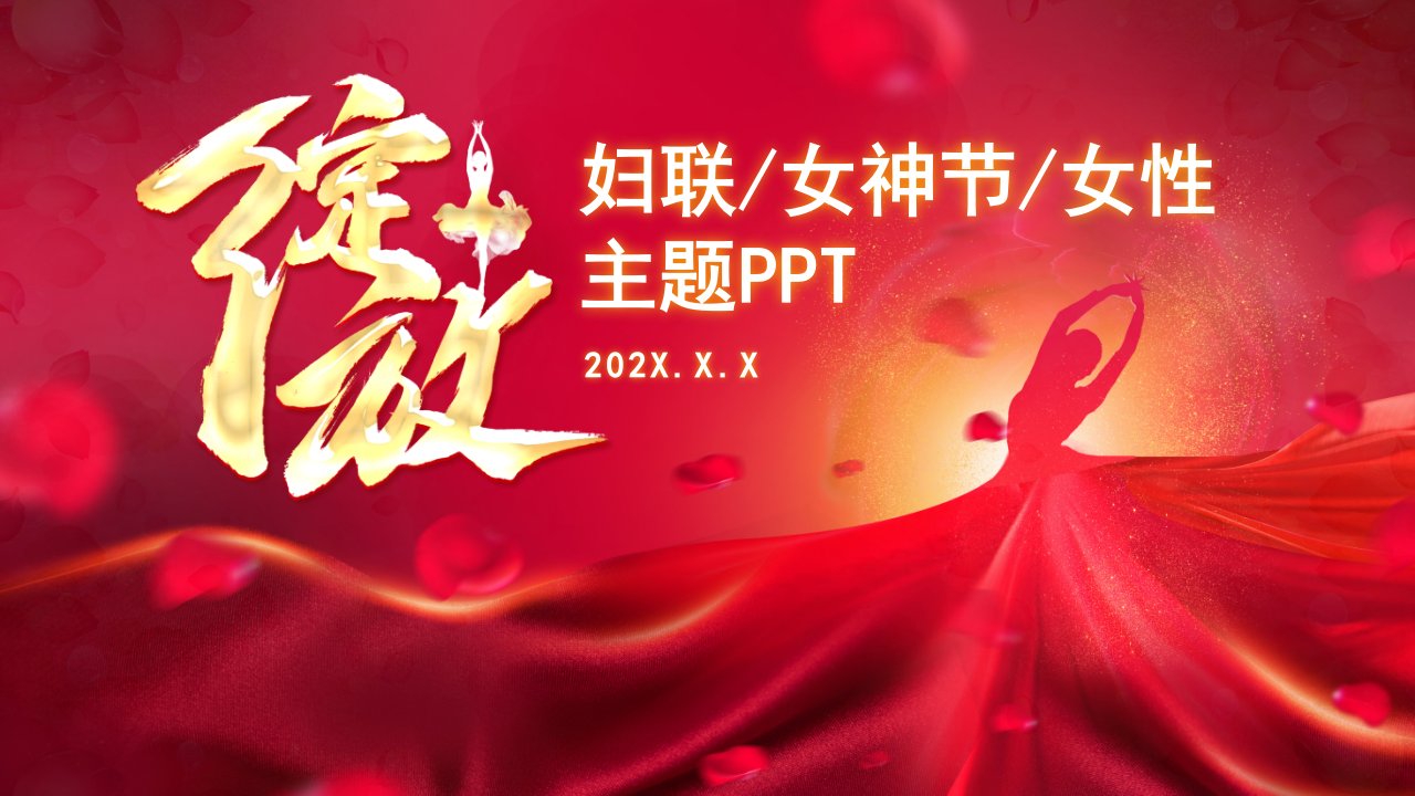 妇女节女神节党课ppt模板(带内容)舞动的女人PPT模板