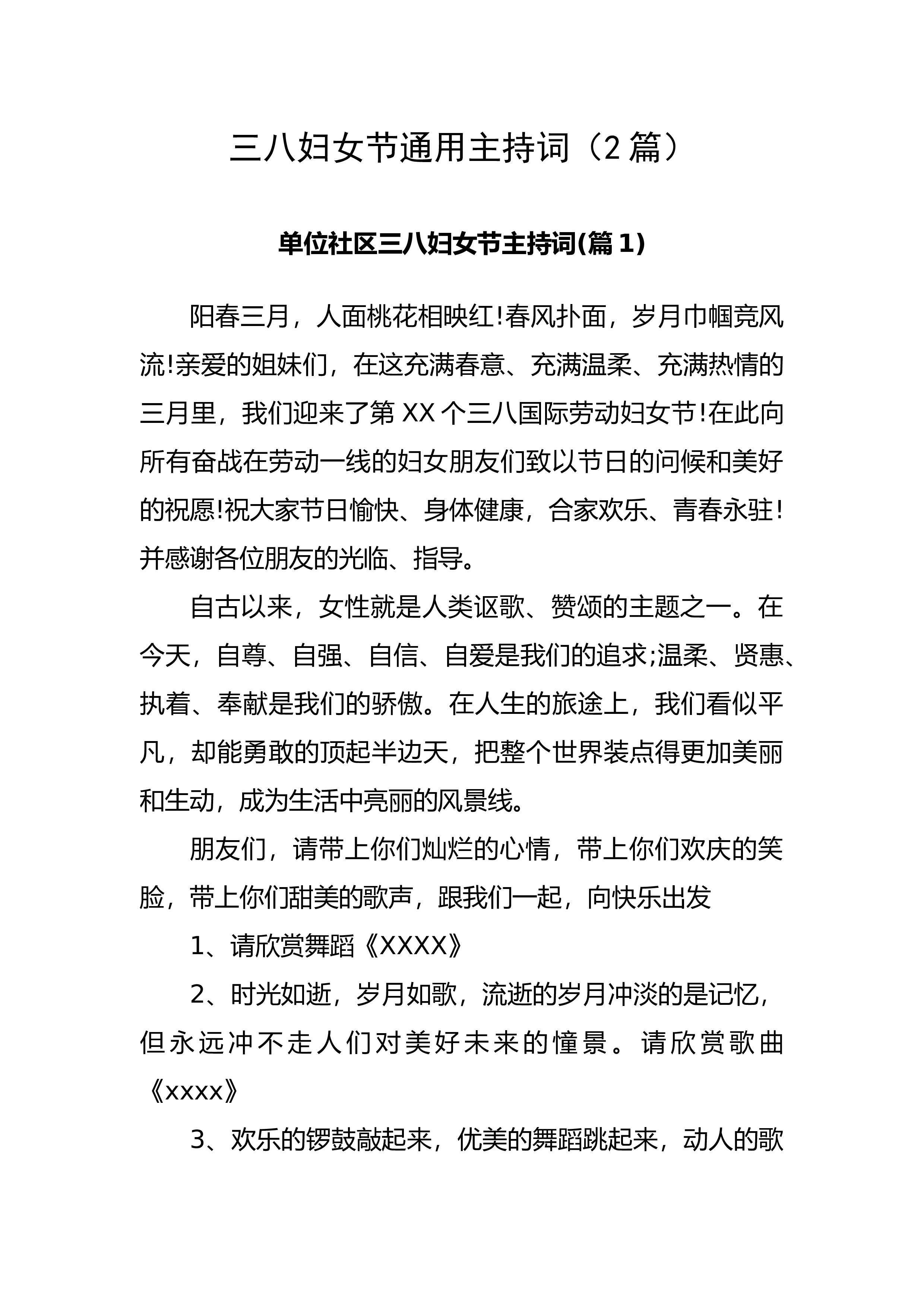 通用主持词(2篇)单位社区三八