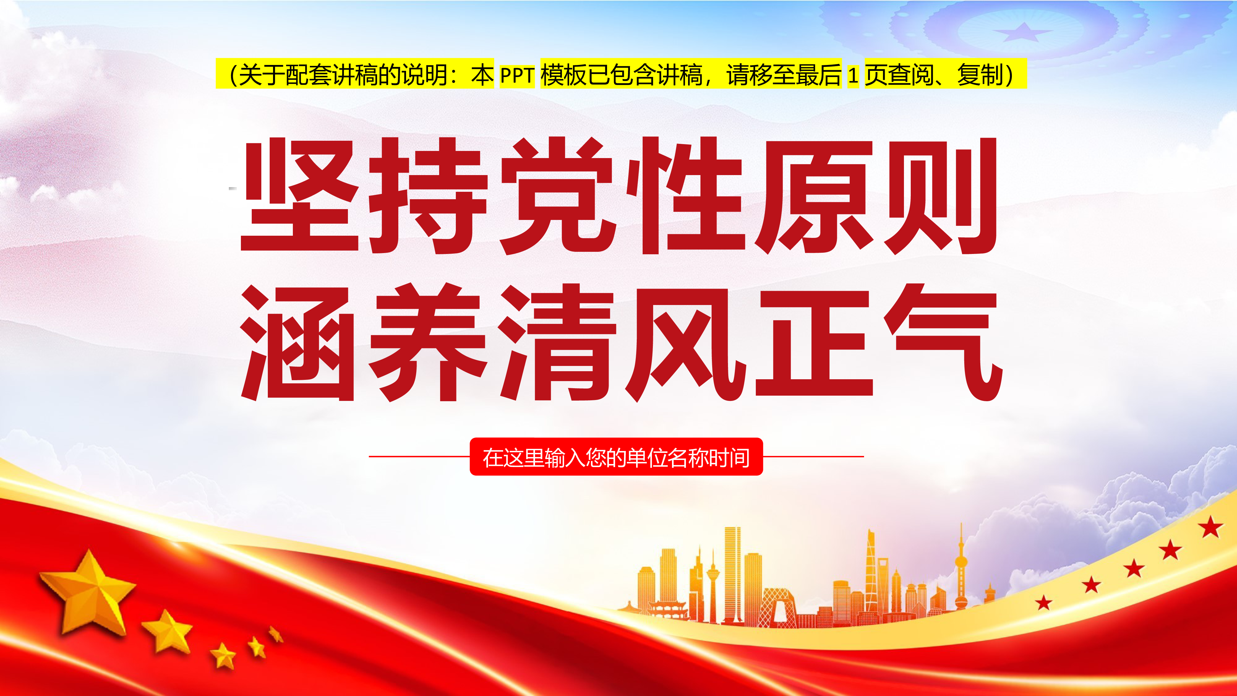 2024微党课坚持党性原则涵养清风正气党课ppt模板(含配套讲稿)党支部团支部党员干部学习党课课件