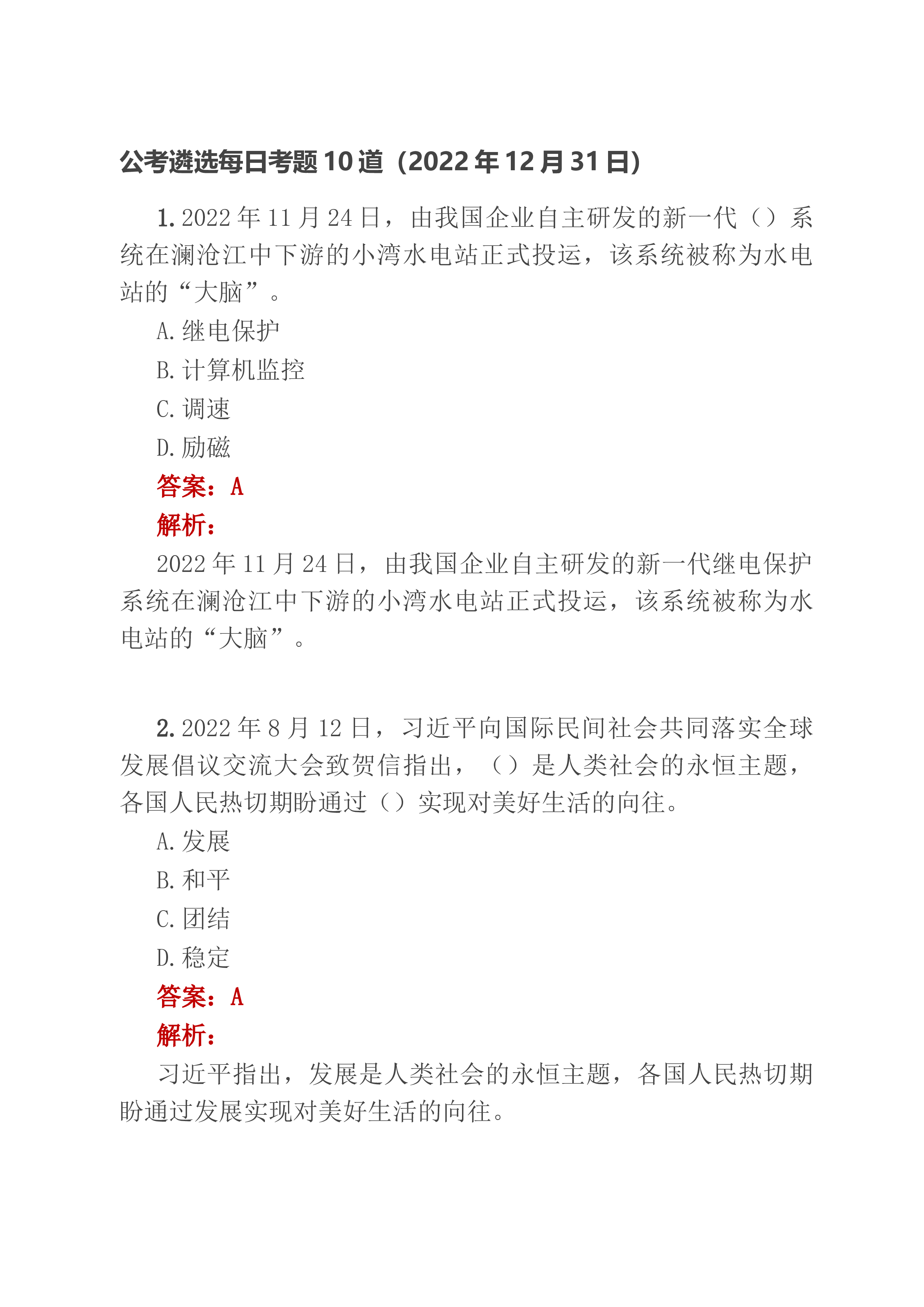 公考遴选每日考题10道(2023年1月2日)