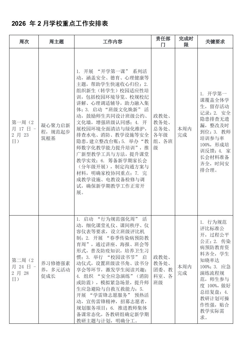 ,学校2026年2月学校重点