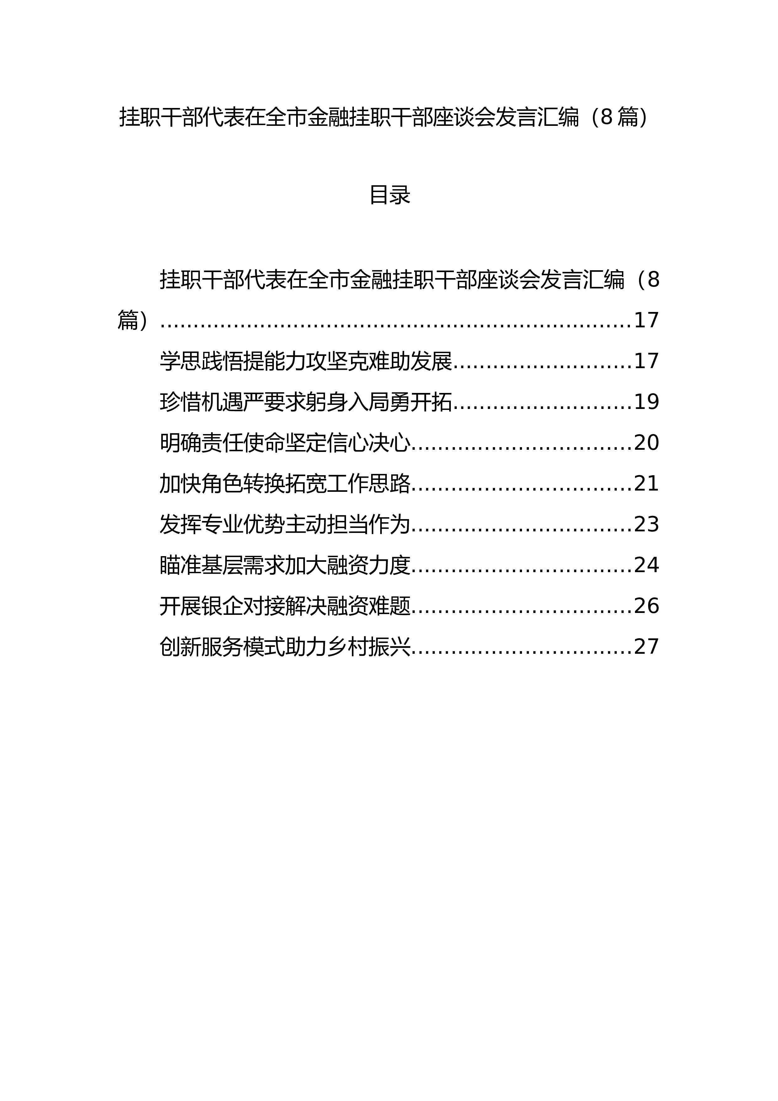 挂职干部代表在全市金融挂职干部座谈会发言汇编(8篇)