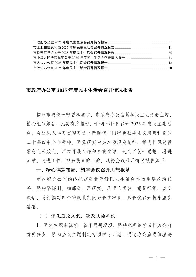 机关办公室2025年度民主生活会召开情况报告民主生活会,情况报告,报告,办公室,生活,