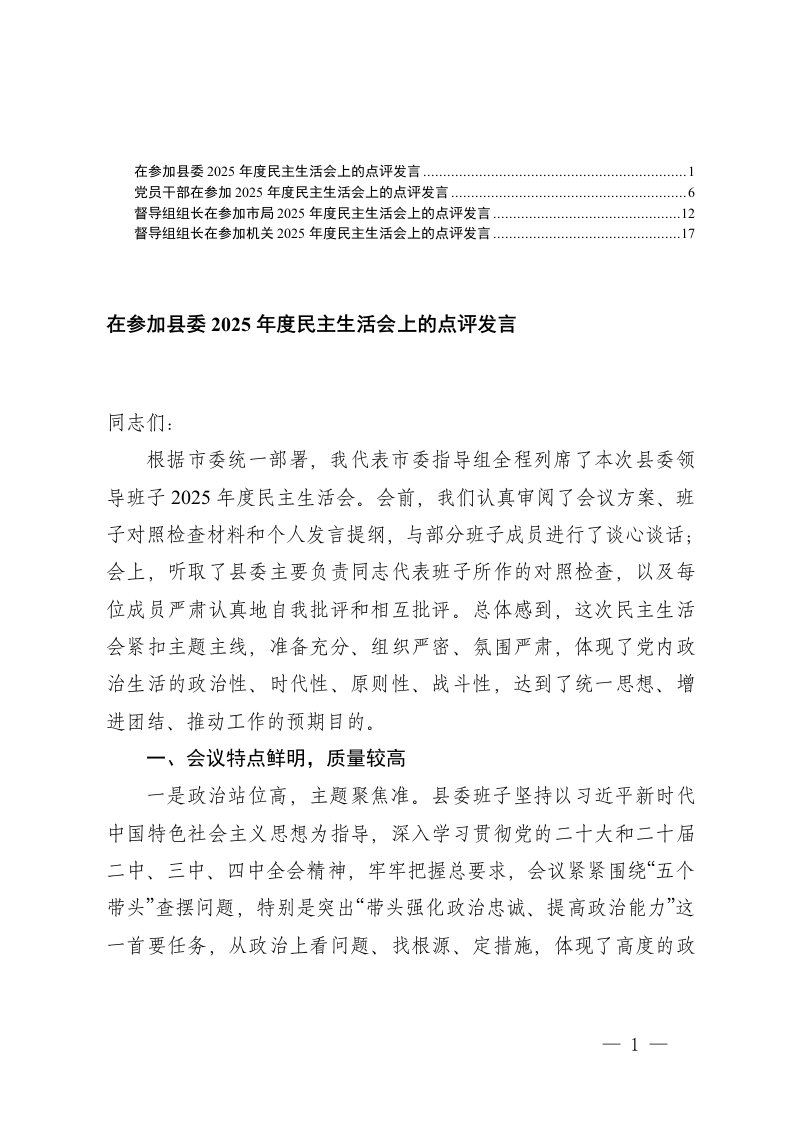 在参加机关2025年度民主生活会上的点评发言民主生活会,发言,生活,