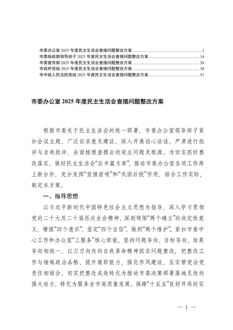党组2025年度民主生活会查摆问题整改方案民主生活会,方案,党组,生活,