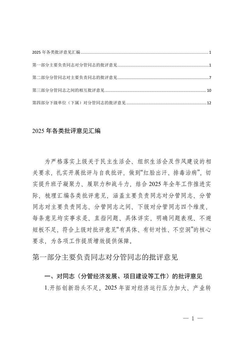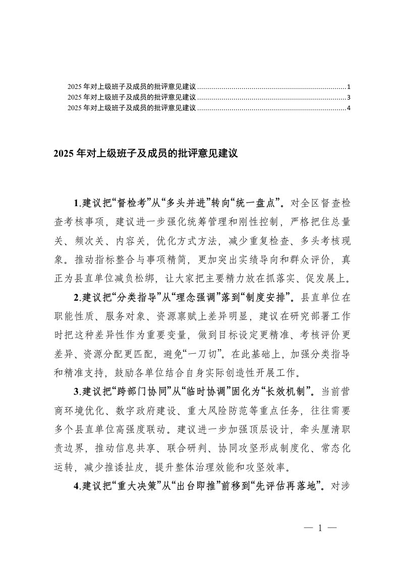 2025年对上级班子及成员的批评意见建议批评意见,意见,意见建议,