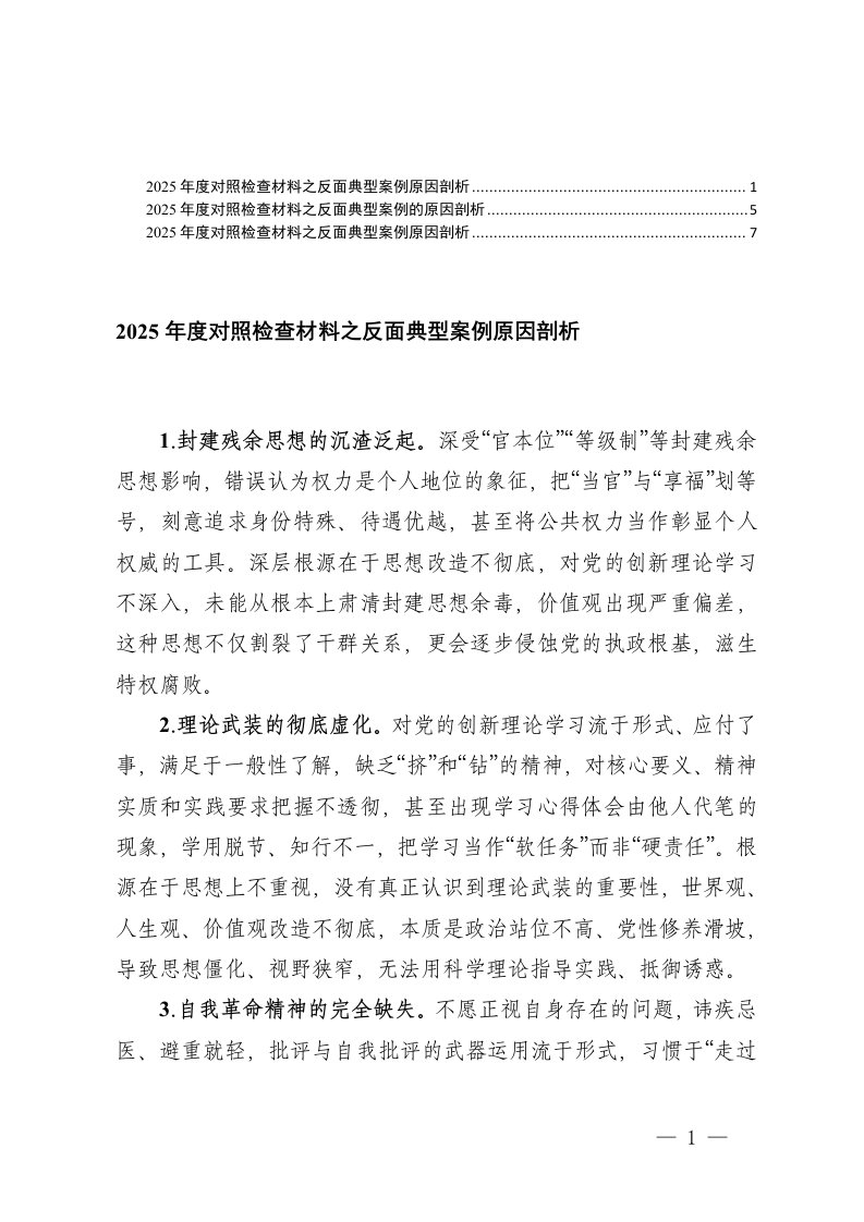 2025年度对照检查材料之反面典型案例原因剖析对照检查材料,对照检查,典型案例,