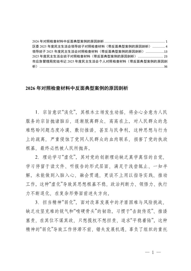 ,材料2026年对照检查材料中反面典型案例的原因剖析