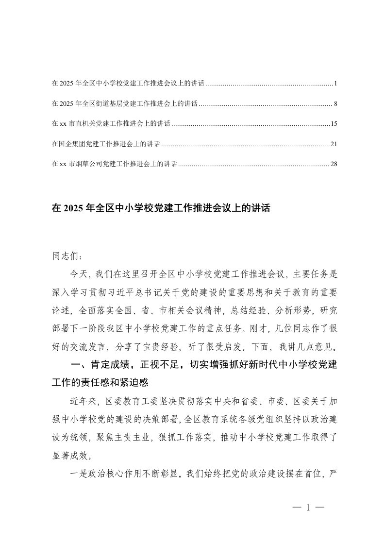 在2025年中小学校街道集团公司党建工作推进会议上的讲话党建工作,工作,讲话,党建,学校,中小学,中小学校,集团公司,