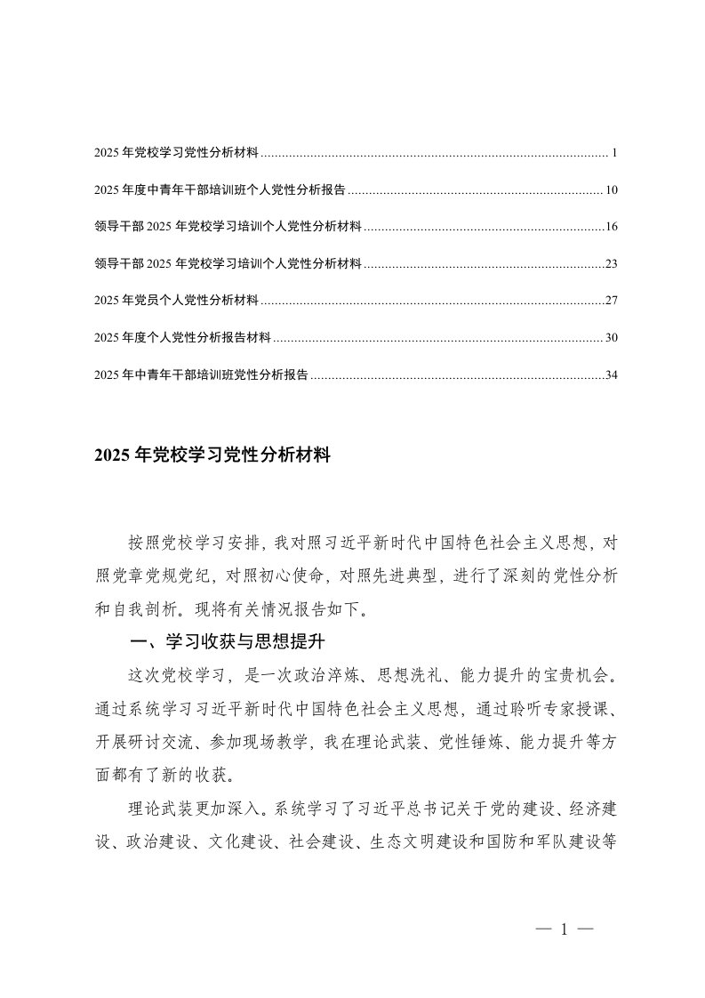 2025年党校学习党性分析材料党性分析,党校学习,学习,