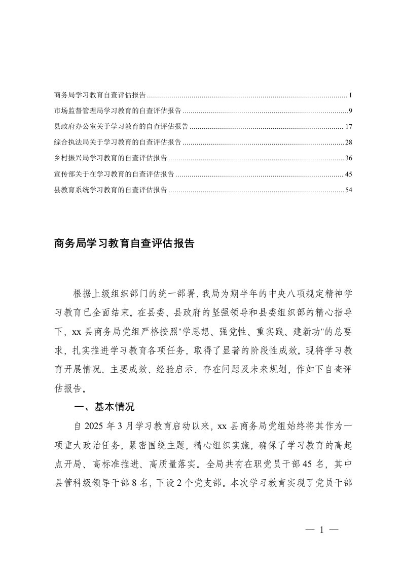 教育系统关于2025年学习教育的自查评估报告教育,报告,学习教育,教育系统,学习,