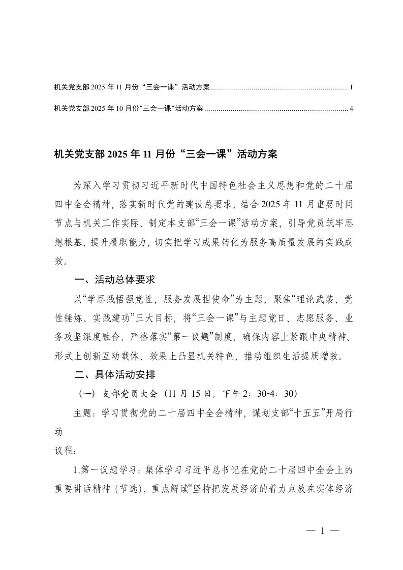 ,党支部,三会一课,方案机关党支部2025年10月份11月份三会一课