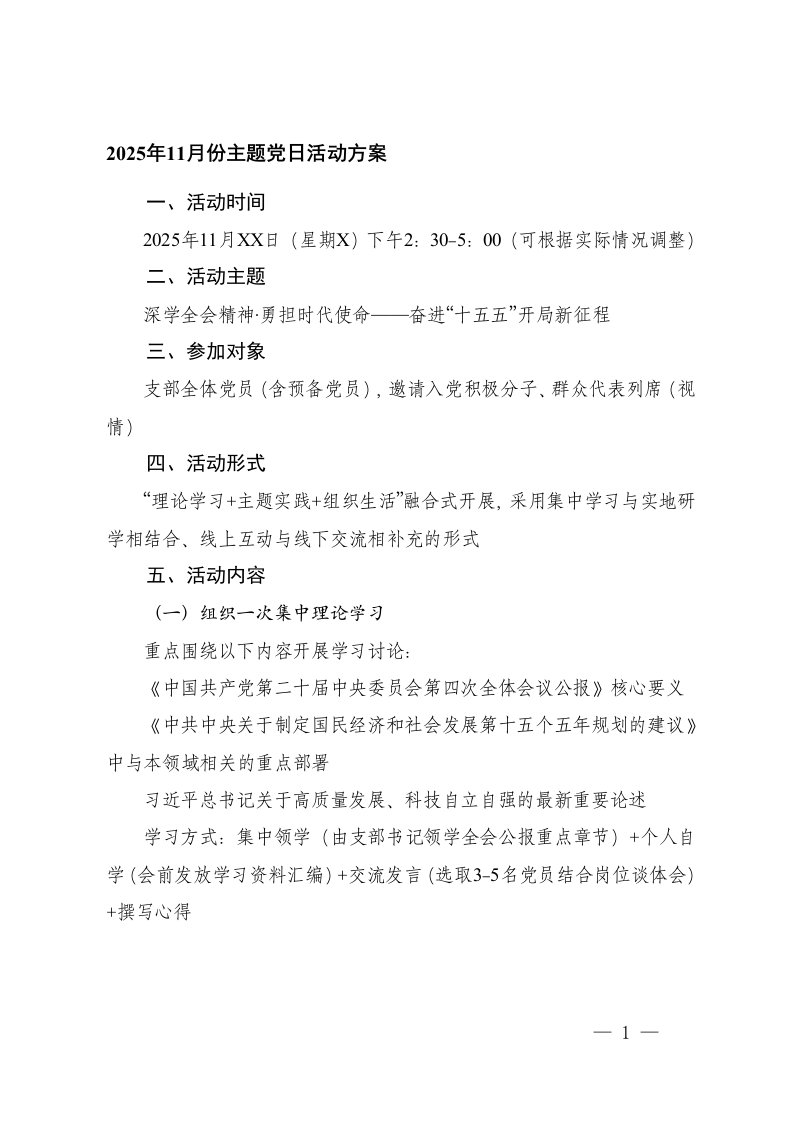 ,党日活动,主题党日,方案2025年11月份主题党日
