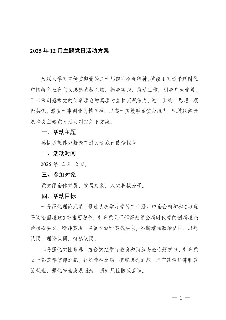 2025年12月三会一课方案主题党日活动,