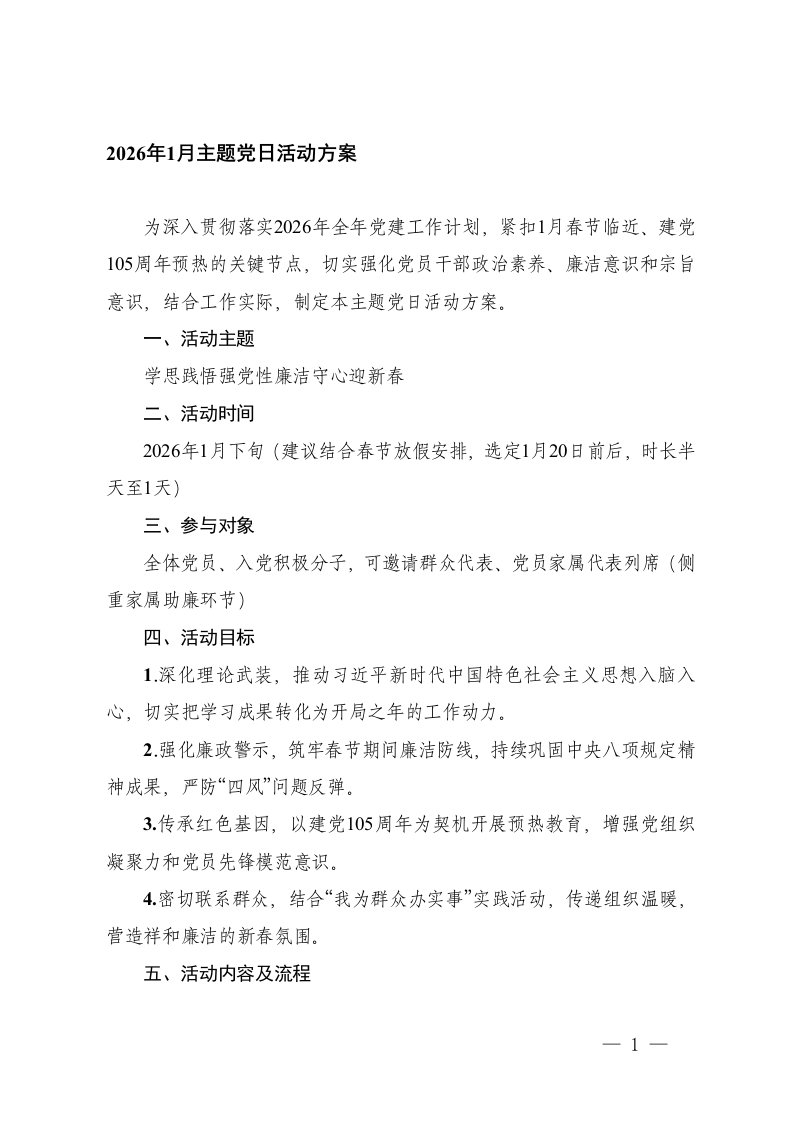 ,党日活动,主题党日,方案2026年1月主题党日