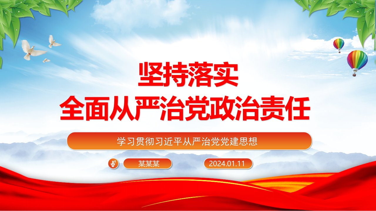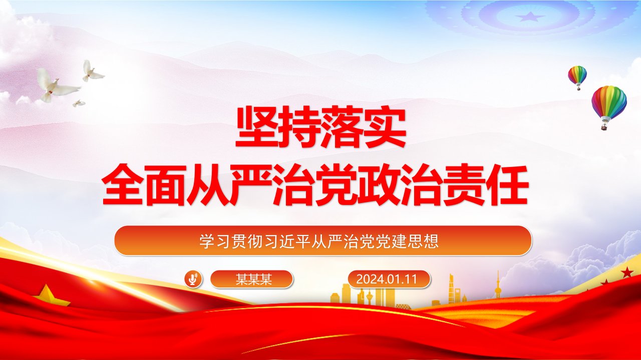 2024坚定不移落实全面从严治党政治责任ppt模板(带内容)学习贯彻习近平从严治党党建思想微党课