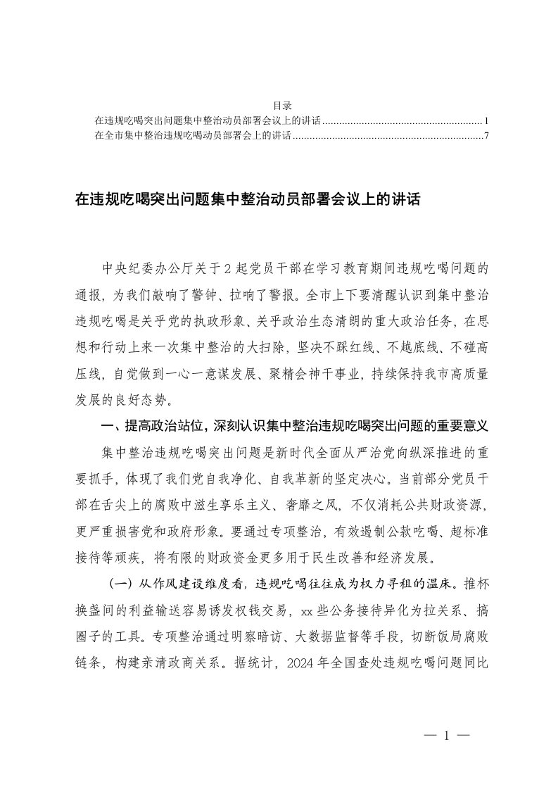 县委书记在全县集中整治违规吃喝工作会议上的讲话2025年关于违规吃喝问题专项整治工作的讲话在医院集中整治违规吃喝工作会议上的讲话