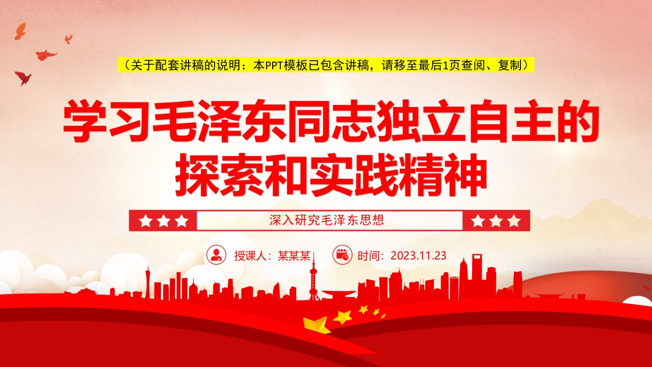 2024微党课2023学习毛泽东同志独立自主的探索和实践精神党课ppt模板(含配套讲稿)深入研究毛泽东思想党员专题教育党课课件