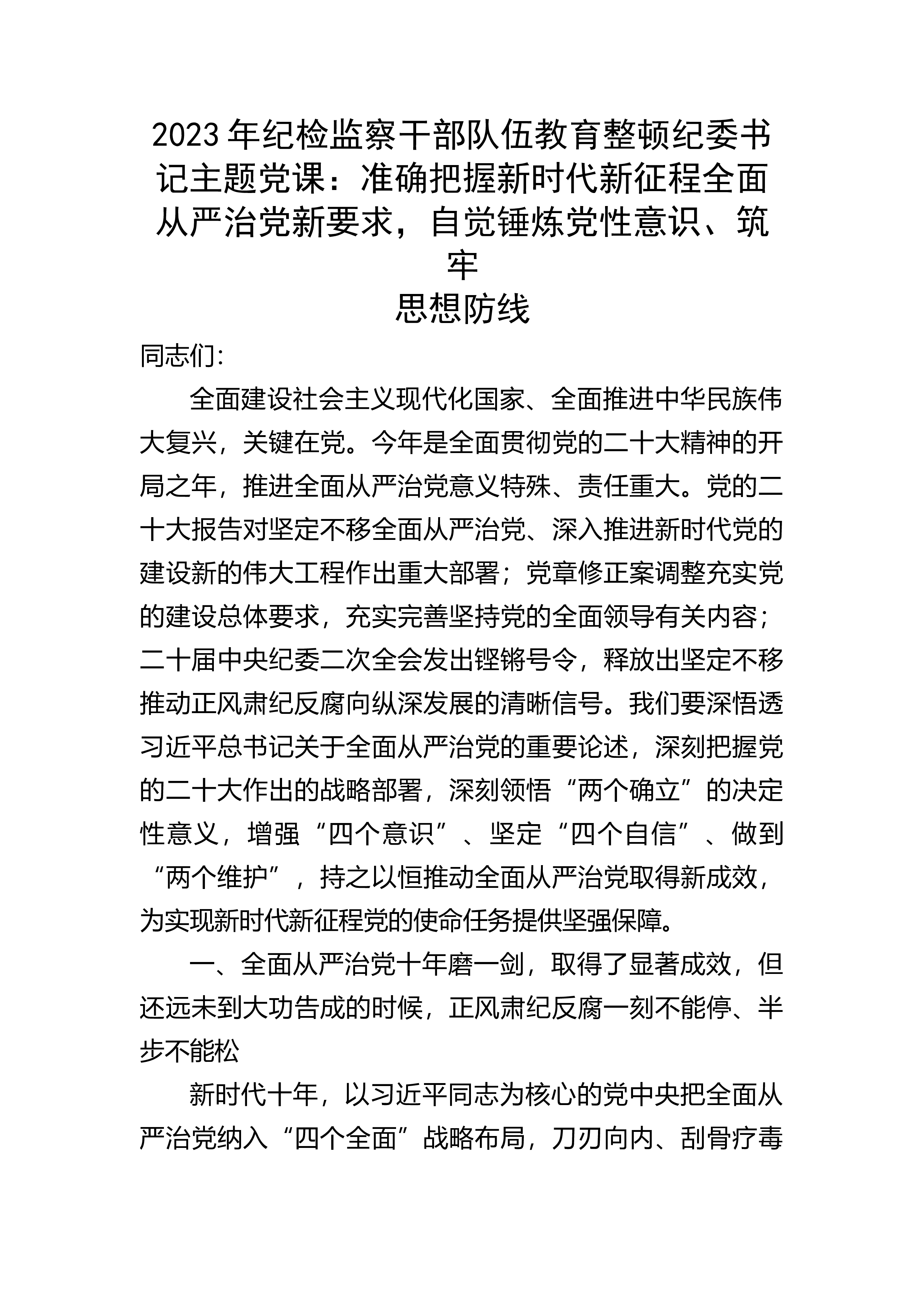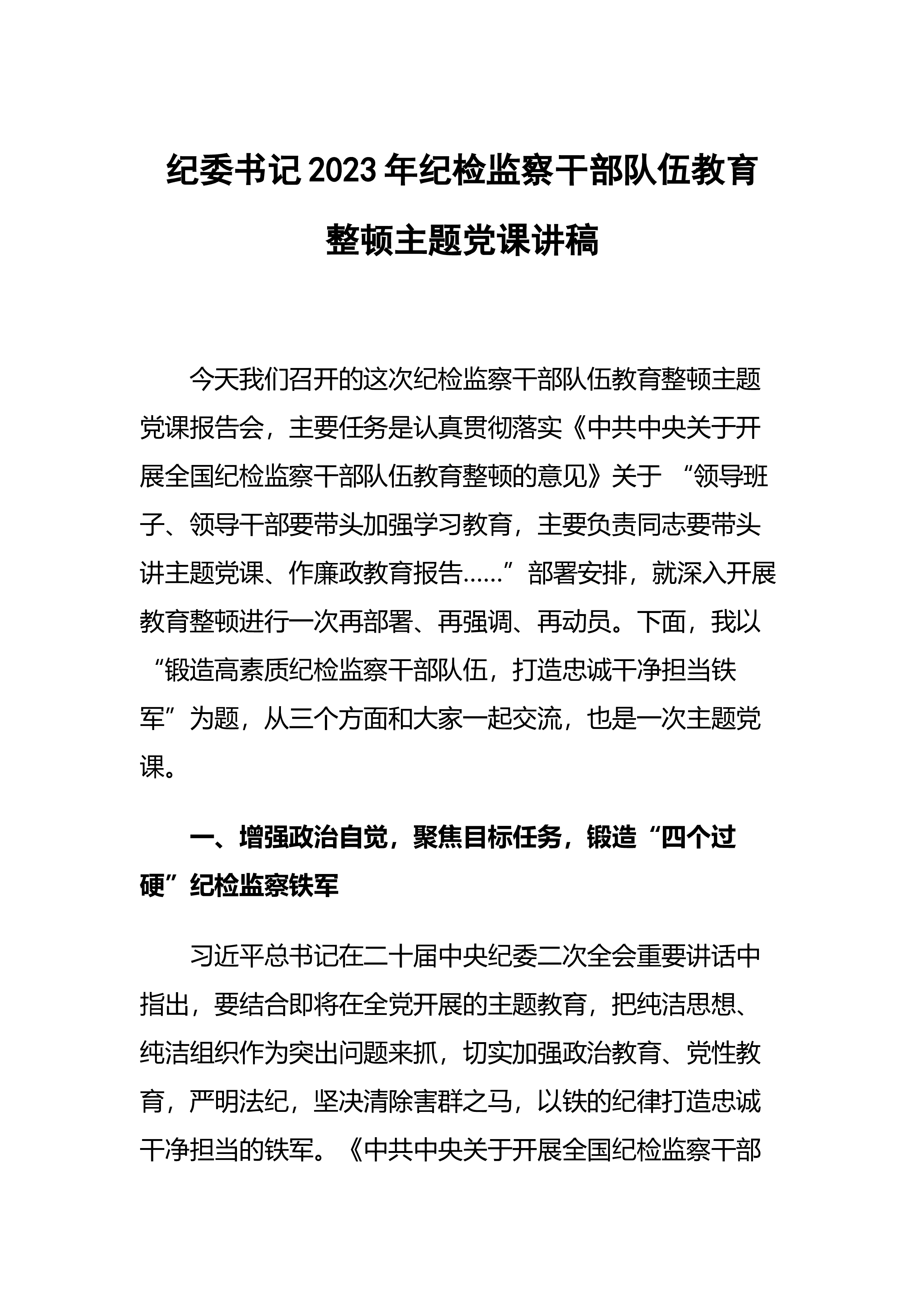 市纪委书记监委主任在全市纪检监察干部队伍教育整顿动员部署会上的讲话同志们: 经市委同意,今天我们组织召开全市纪检监察干部队伍教育整顿动员部署会,会议主要任务是坚持以习近平新时代中国特色社会主义思想为指导,深入学习贯彻XXX和XXX、XX全会精神,全面贯彻落实二十届中央纪委二次全会精神,特别是习近平总书记重要讲话精神,紧扣全国纪检监察干部队伍教育整顿动员部署会议精神,对全市教育整顿工作进行动员部署。根据会议安排,我讲几点意见。 一、提高政治站位,充分认识教育整顿工作的重要意义 开展教育整顿是从贯彻落实党中央决策、中央纪委国家监委、省纪委监委部署的必然要求。善禁者,先禁其身而后人。纪检监察机...