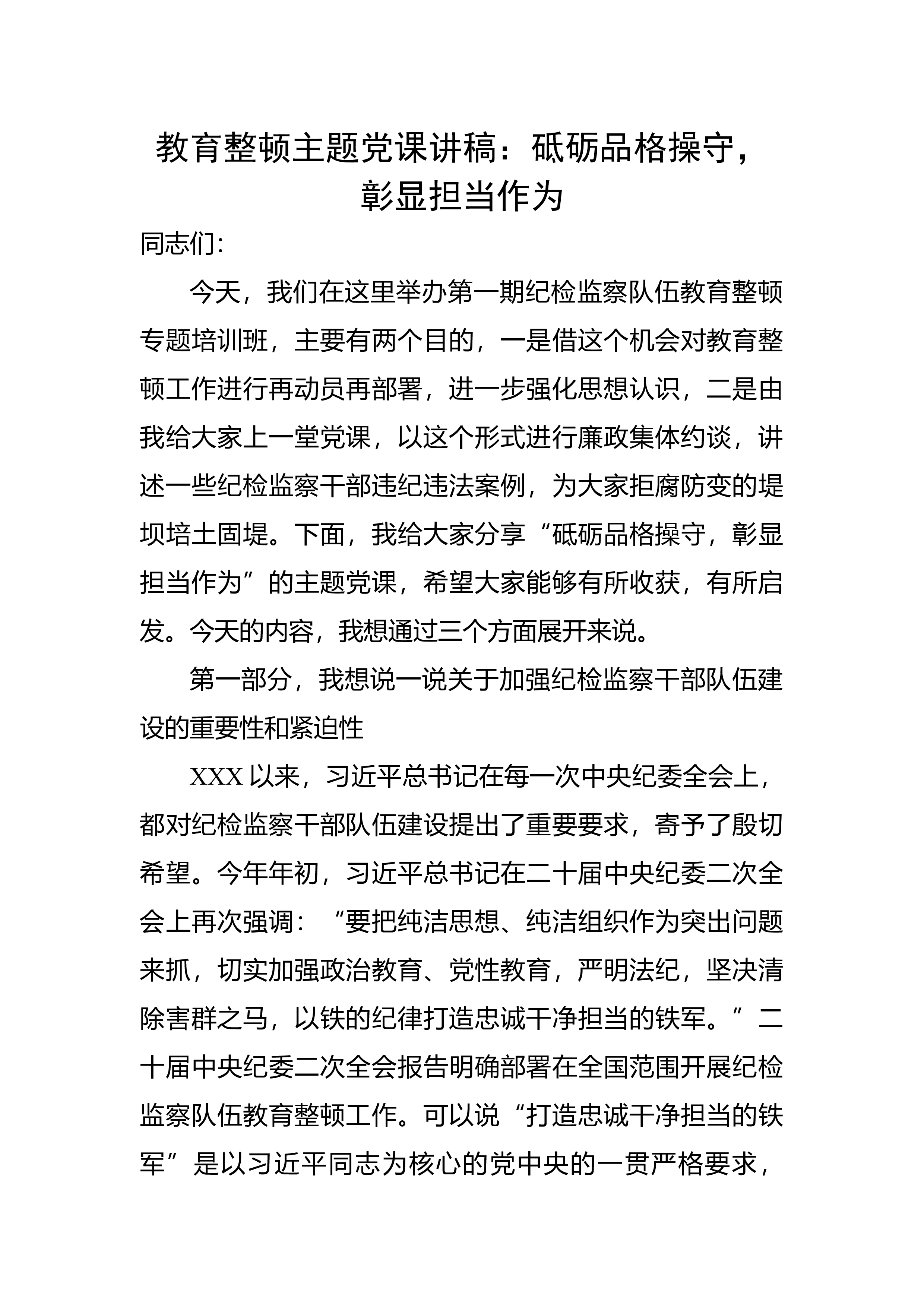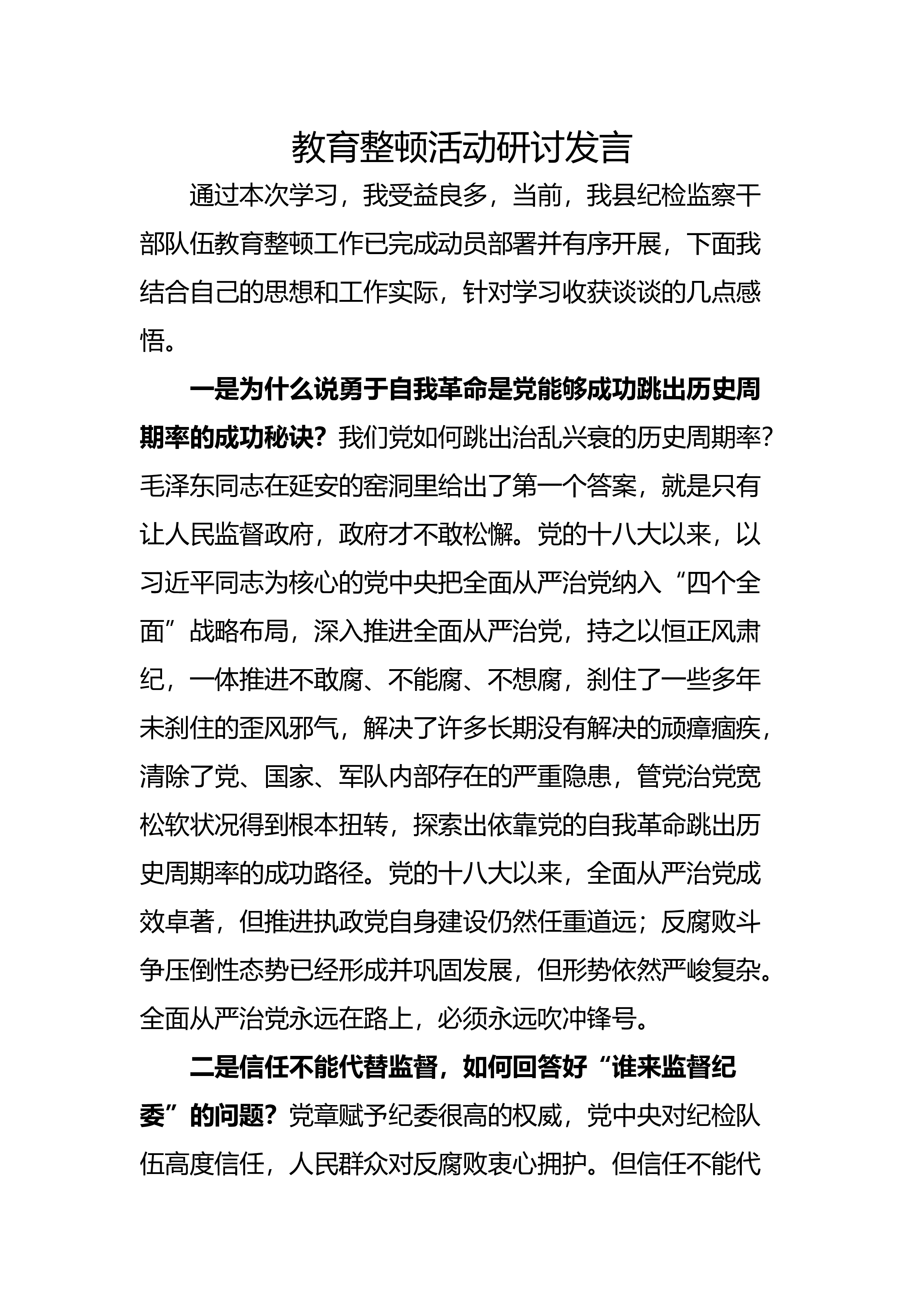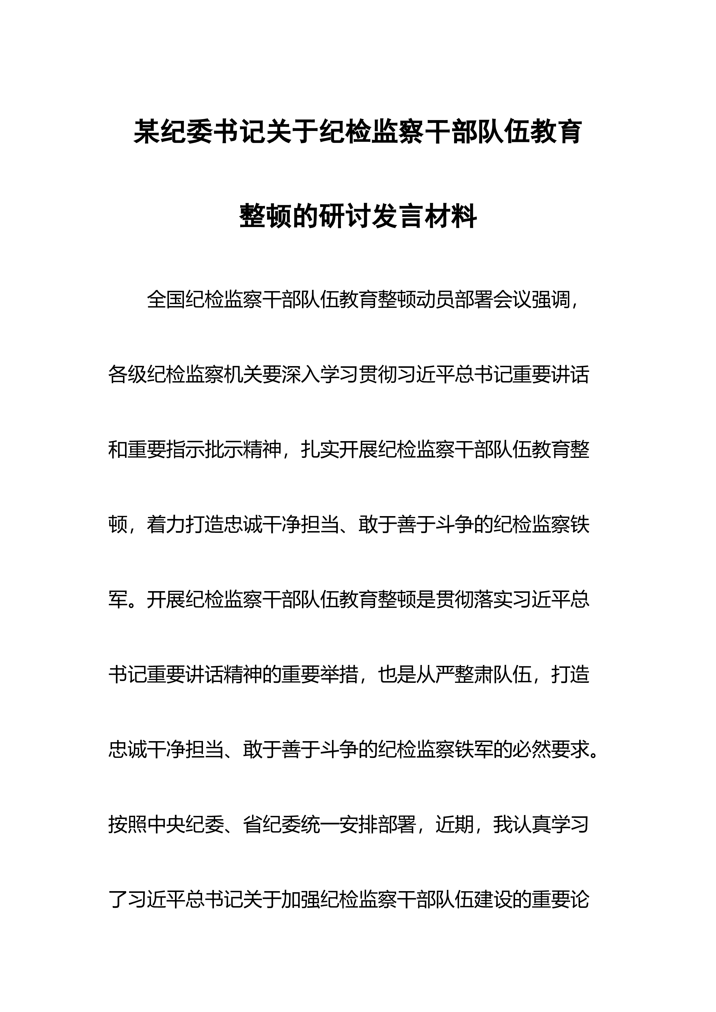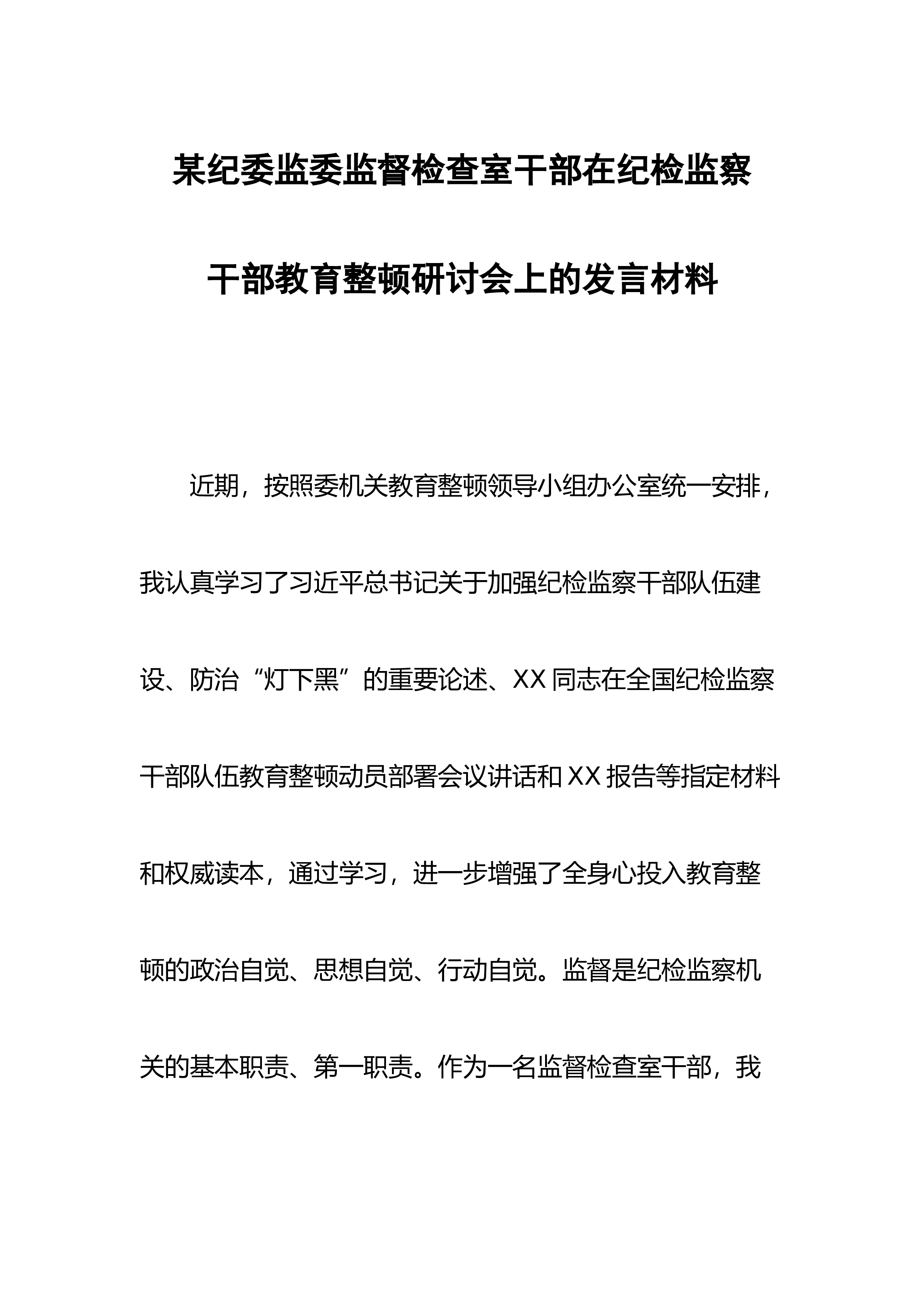 【JJ队伍教育整顿】某县纪检监察干部队伍教育整顿第一环节经验交流材料