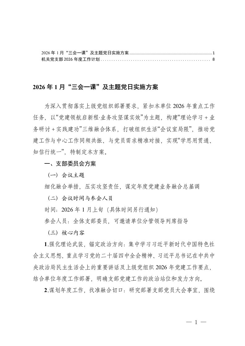 ,方案,工作,年度工作2026年1月三会一课及主题党日实施方案机关党支部2026年度工作