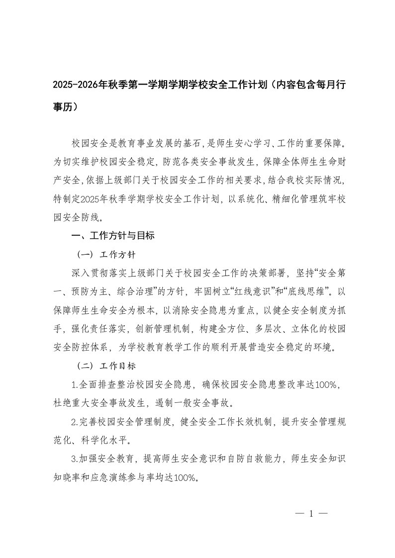 ,工作,学校2025-2026年秋季第一学期学期学校安全工作