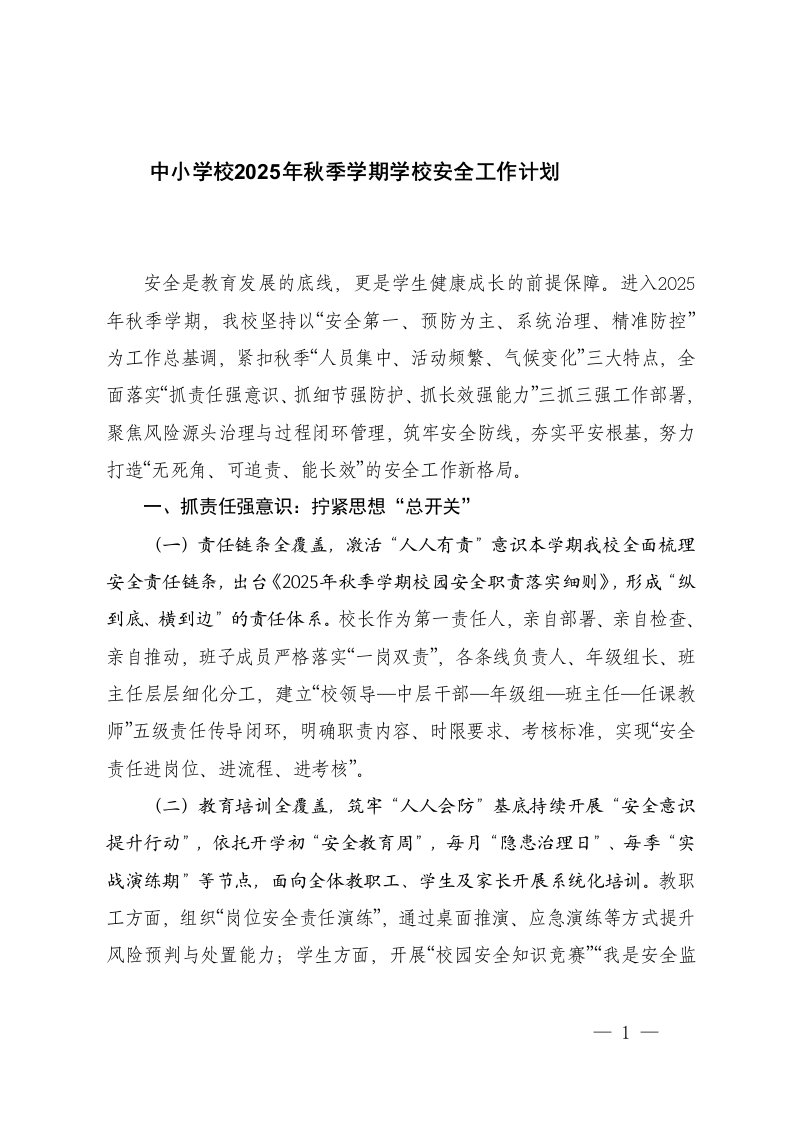 ,工作,学校,中小学,中小学校中小学校2025年秋季学期学校安全工作