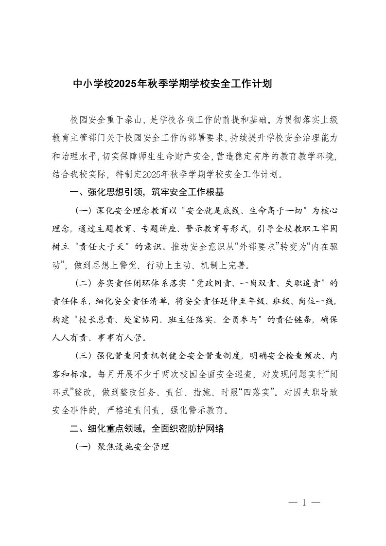 ,工作,学校,中小学,中小学校中小学校2025-2026年秋季学期学校安全工作