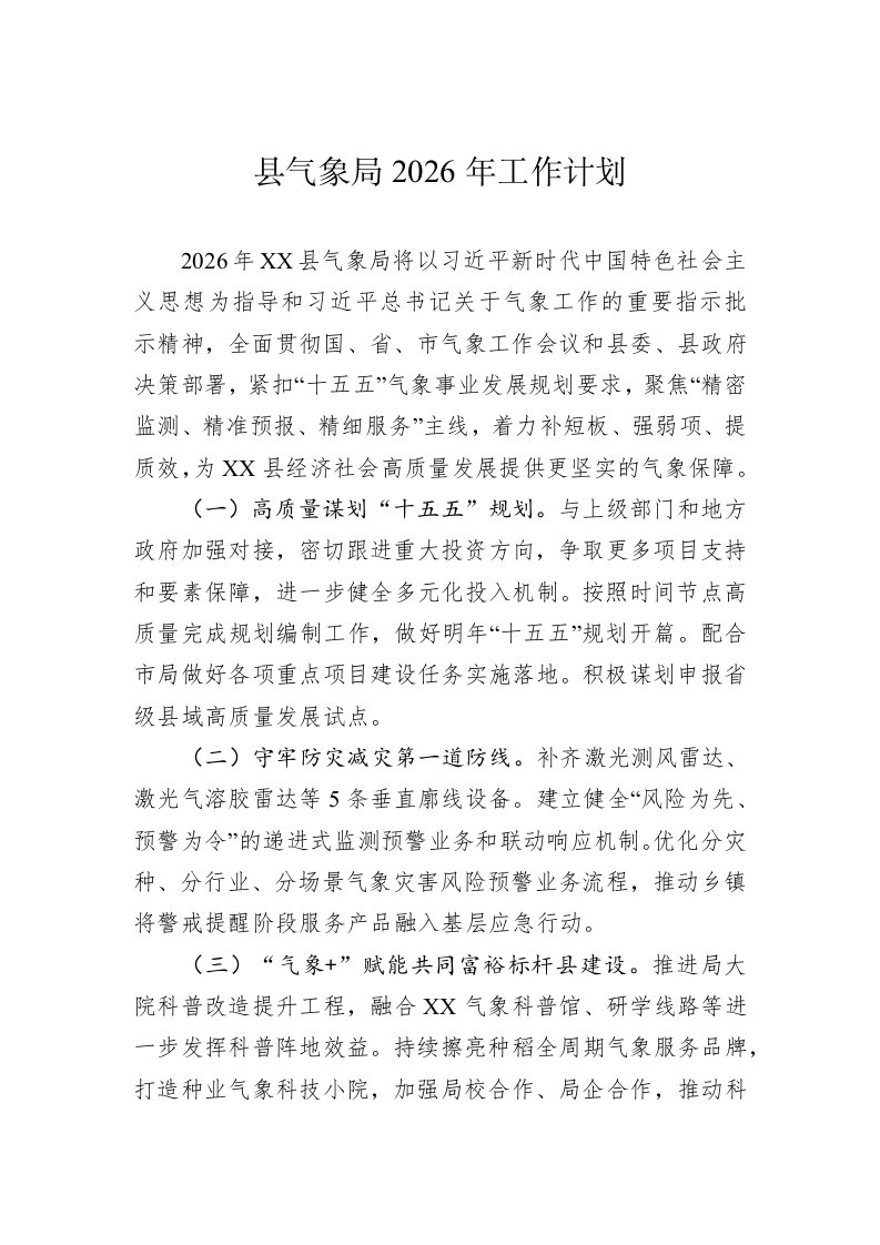 县气象局2026年工作