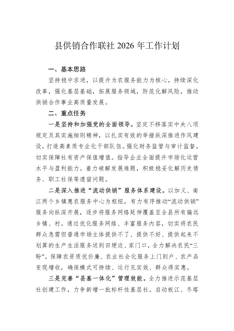 县供销合作联社2026年工作