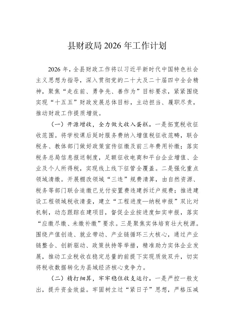 ,工作,财政县财政局2026年工作