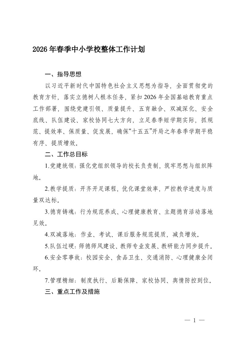 2026年春季中小学校整体工作